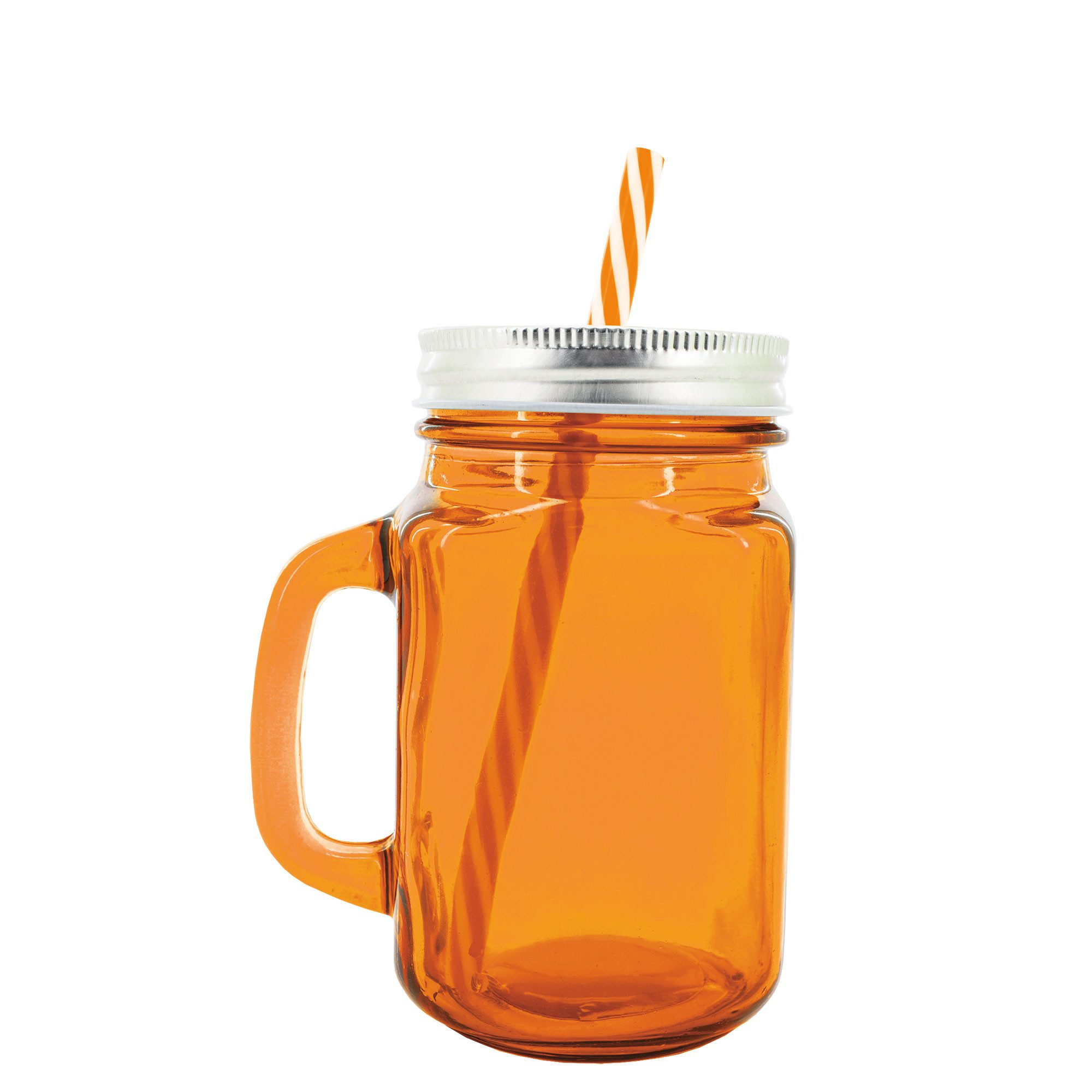 Trinkglas mit Deckel & Strohhalm "Bristi" - orange