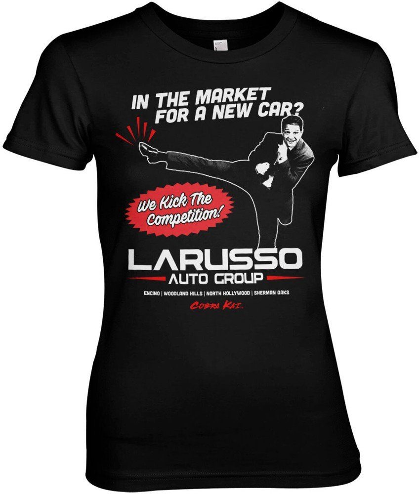 Das Cobra Kai Larusso Auto Group Girly Tee Damen T-Shirt in Schwarz ist ein Must-Have für alle Fans der Serie Cobra Kai. Das Shirt besticht durch sein feminines Design und den coolen Aufdruck, der die Zusammenarbeit zwischen den beiden rivalisierenden Autohäusern zeigt. Mit diesem T-Shirt setzt du ein modisches Statement und zeigst gleichzeitig deine Verbundenheit mit deiner Lieblingsserie. Das hochwertige Material sorgt für einen angenehmen Tragekomfort und eine optimale Passform. Das Shirt ist vielseitig kombinierbar und eignet sich perfekt für den Alltag, den Sport oder für gemütliche Abende zu Hause. Zeige deine Leidenschaft für Cobra Kai und die Larusso Auto Group mit diesem stylischen Damen T-Shirt. Hol dir jetzt das Cobra Kai Larusso Auto Group Girly Tee Damen T-Shirt in Schwarz und zeige allen, für welches Autohaus dein Herz schlägt. Das Shirt ist nicht nur ein modisches Highlight, sondern auch ein echtes Must-Have für alle Fans der Serie. Bestelle jetzt und sei bereit für jede Gelegenheit, um deine Liebe zu Cobra Kai zu zeigen.