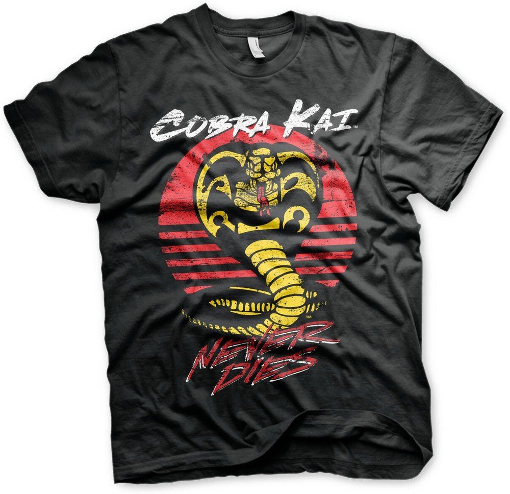 Das Cobra Kai Never Dies T-Shirt in Schwarz ist ein Must-Have für alle Fans der beliebten Serie. Das Shirt besticht durch sein cooles Design mit dem markanten Schriftzug "Cobra Kai Never Dies" auf der Vorderseite. Die hochwertige Baumwollqualität sorgt für einen angenehmen Tragekomfort und macht das Shirt zum idealen Begleiter im Alltag. Mit diesem T-Shirt setzt du ein Statement und zeigst deine Verbundenheit zur Cobra Kai Gemeinschaft. Egal ob beim Sport, in der Freizeit oder beim Treffen mit Freunden - mit diesem Shirt ziehst du alle Blicke auf dich. Das zeitlose Design und die klassische Farbe Schwarz machen das Shirt vielseitig kombinierbar und zu einem echten Eyecatcher. Hol dir jetzt das Cobra Kai Never Dies T-Shirt in Schwarz und zeige deine Leidenschaft für die Serie. Das Shirt ist in verschiedenen Größen erhältlich und eignet sich auch perfekt als Geschenk für andere Cobra Kai Fans. Zeige deine Stärke und deinen Kampfgeist mit diesem coolen T-Shirt!