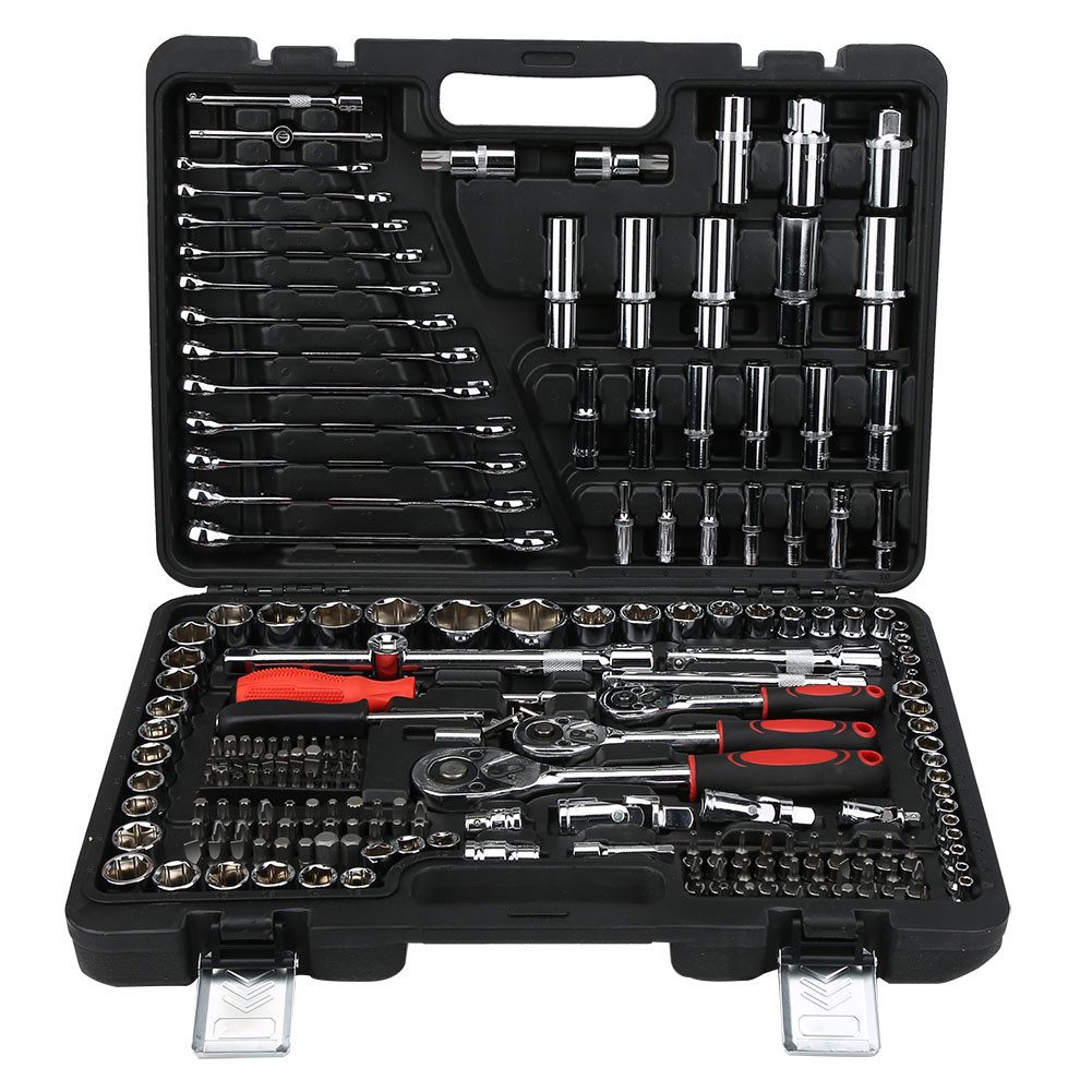 215-tlg. Steckschlüssel-Satz (1/4" + 3/8" + 1/2" Antrieb) in Industriequalität. Vollständiges Werkzeug-Set mit Chrom-Vanadium-Steckschlüsseln, Knarren mit 72 Zähnen und Adaptern nach DIN 3120. Die farbcodierte Aufteilung im ABS-Koffer (IP65) ermöglicht schnelles Auffinden von Torx- Sechskant-Einsätzen für Kfz/Maschinenbau. Inkl. Gelenkverlängerungen, Bit-Halter und Universalgelenken – getestet bis 250 Nm Drehmoment. TÜV-geprüfte Sicherheit nach DIN ISO 6789.