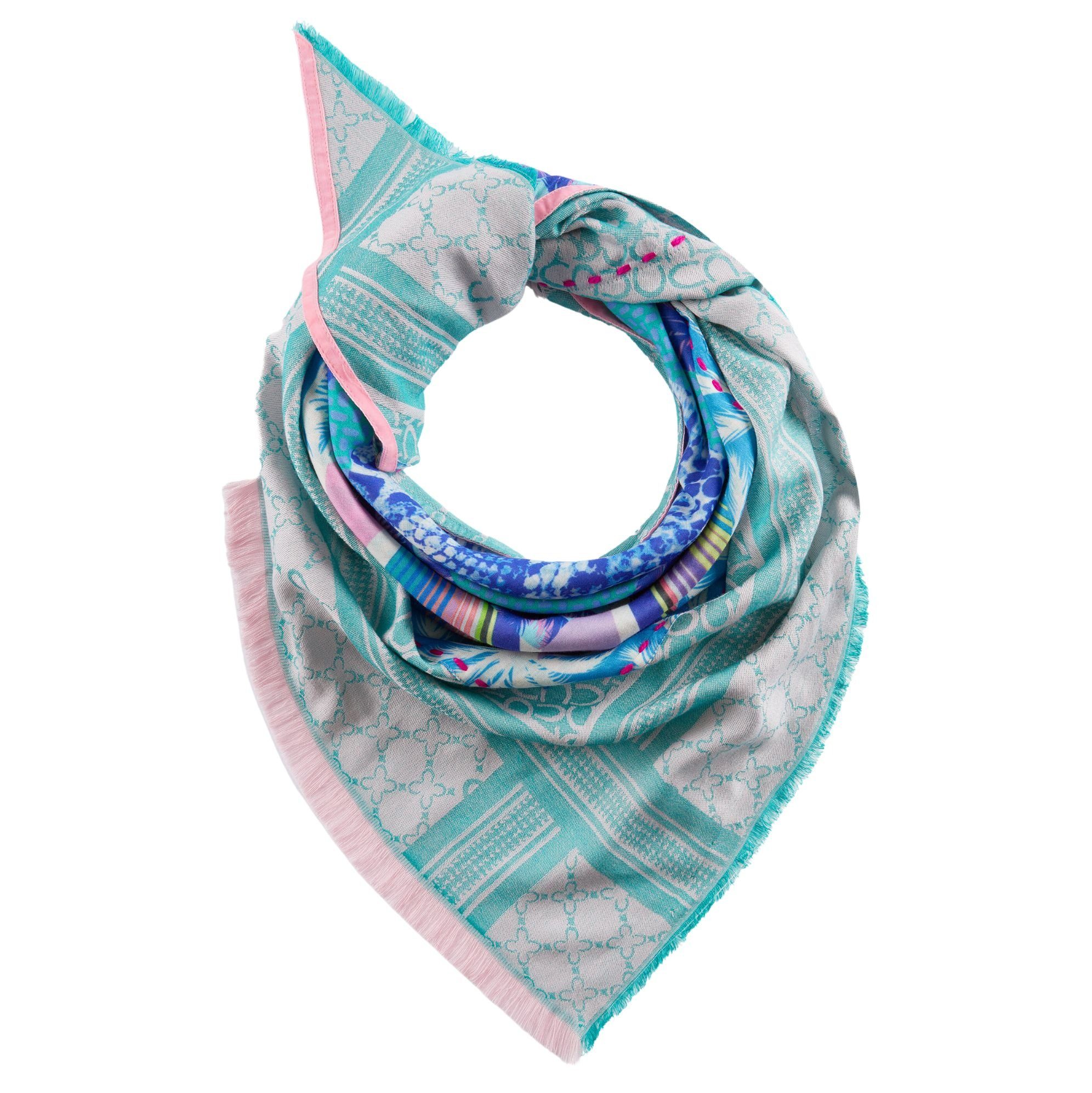 Codello beidseitig tragbares Dreieckstuch in Türkis Größe: 120 x 120 x 170 cm Farbe: türkis Material: 75 % Baumwolle, 25 % Modal Gepaschter Print Mix Kontraststickerei Samtbordüre Beidseitig tragbar Fransenabschlüsse Orientieren wir uns an Fashionistas! Die stellen ihr Trendgespür mit cleanen Basics unter Beweis und peppen sie mit einem Wow Piece Accessoire auf. Unser Dreieckstuch im Logo-Design mit gepatchtem Baumwoll-Print ist so ein Wow-Modell. Styling-Tipp: Wir finden es auch locker um die Hüften geschwungen richtig schick. Jacquard nennt man eine besondere Gewebetechnik für Stoffe. Durch die Verkreuzung unterschiedlich eingefärbter Garne ist die Herstellung komplexer Muster möglich, die durch ein Spiel aus unterschiedlichen Tiefen und Schattierungen bestechen. Wir verwenden hierbei eine Mischung aus Modal und Baumwolle. Damit lassen sich sowohl unsere Ton-in-Ton gehaltenen Monogramm-Motive weben, die für einen edlen, zeitlosen Look stehen. Sie dient aber auch als Basis unserer „Handmade Collection“, in der wir diesen Jacquards durch Handstickereien noch das gewisse Extra verleihen. Das mittlere Volumen ist ganzjährig geeignet.