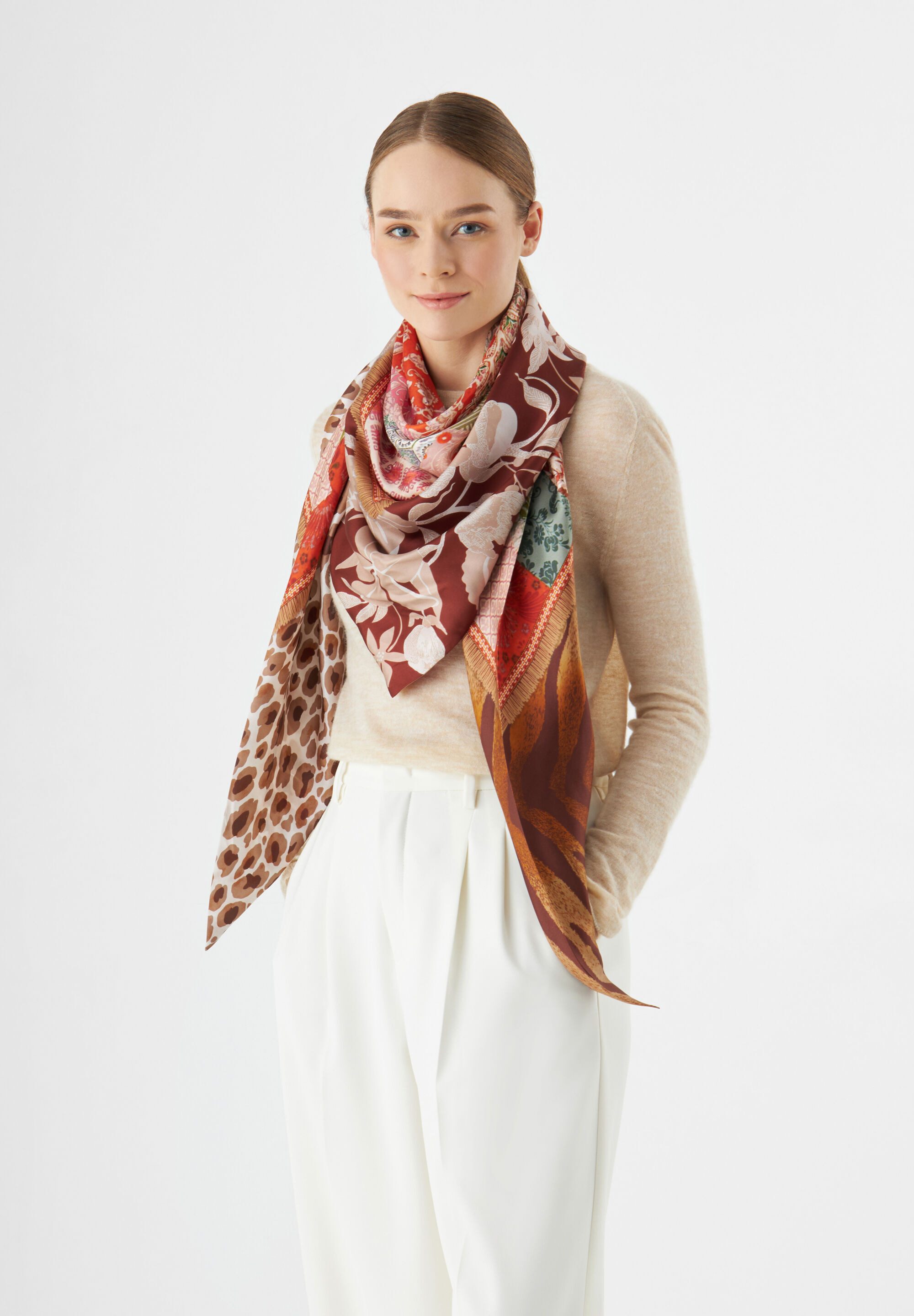 Bei schlichten Looks dürfen Accessoires umso edler ausfallen. Mit diesem Dreieckstuch aus feinster Seide wird jedes Outfit zum eleganten Fashion-Statement. Tipp: Das beidseitig im Pattern-Mix bedruckte Dreieckstuch aus #1 PURE SILK sieht im Sommer auch zum Top geknotet super aus. Das Triangle wurde in einer ausgewählten, chinesischen Seidenmanufaktur, mit der uns eine langjährige Partnerschaft verbindet, aus wertvoller Seide gefertigt. Das Tuch besticht durch seinen angenehm kühlen und geschmeidig weichen Griff, sein luxuriöses Tragegefühl und seine einzigartige Farbbrillanz.