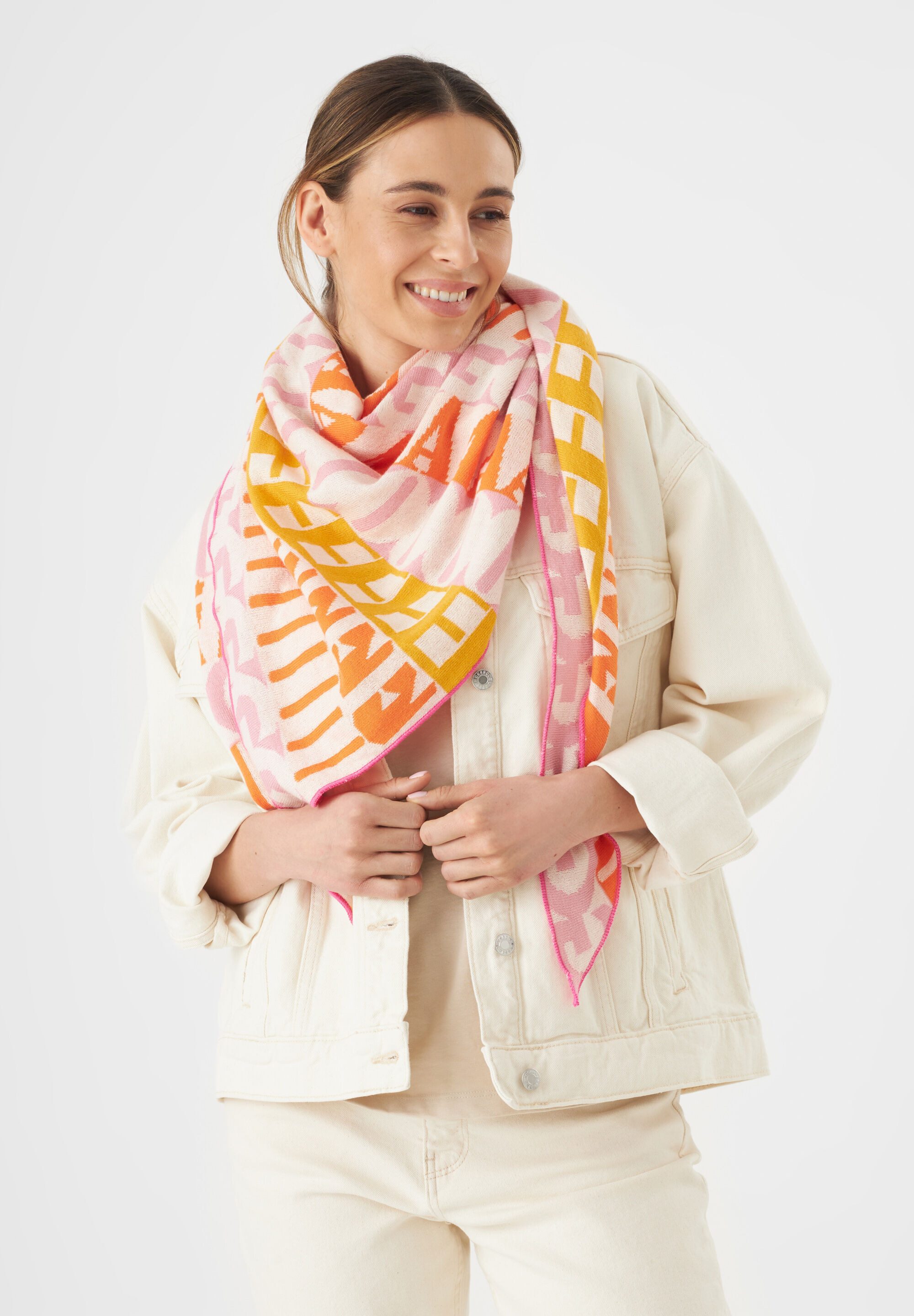 Perfekt für den Übergang. Dieses feingestrickte Dreieckstuch im Buchstaben-Design, kannst du schon an den ersten warmen Frühlingstagen als stylischen Jacken- oder Mantelersatz tragen. Und gefällt es mit dickem Pulli und Jeans lässig kombiniert genauso gut wie als Hingucker zum klassischen Hosenanzug.
