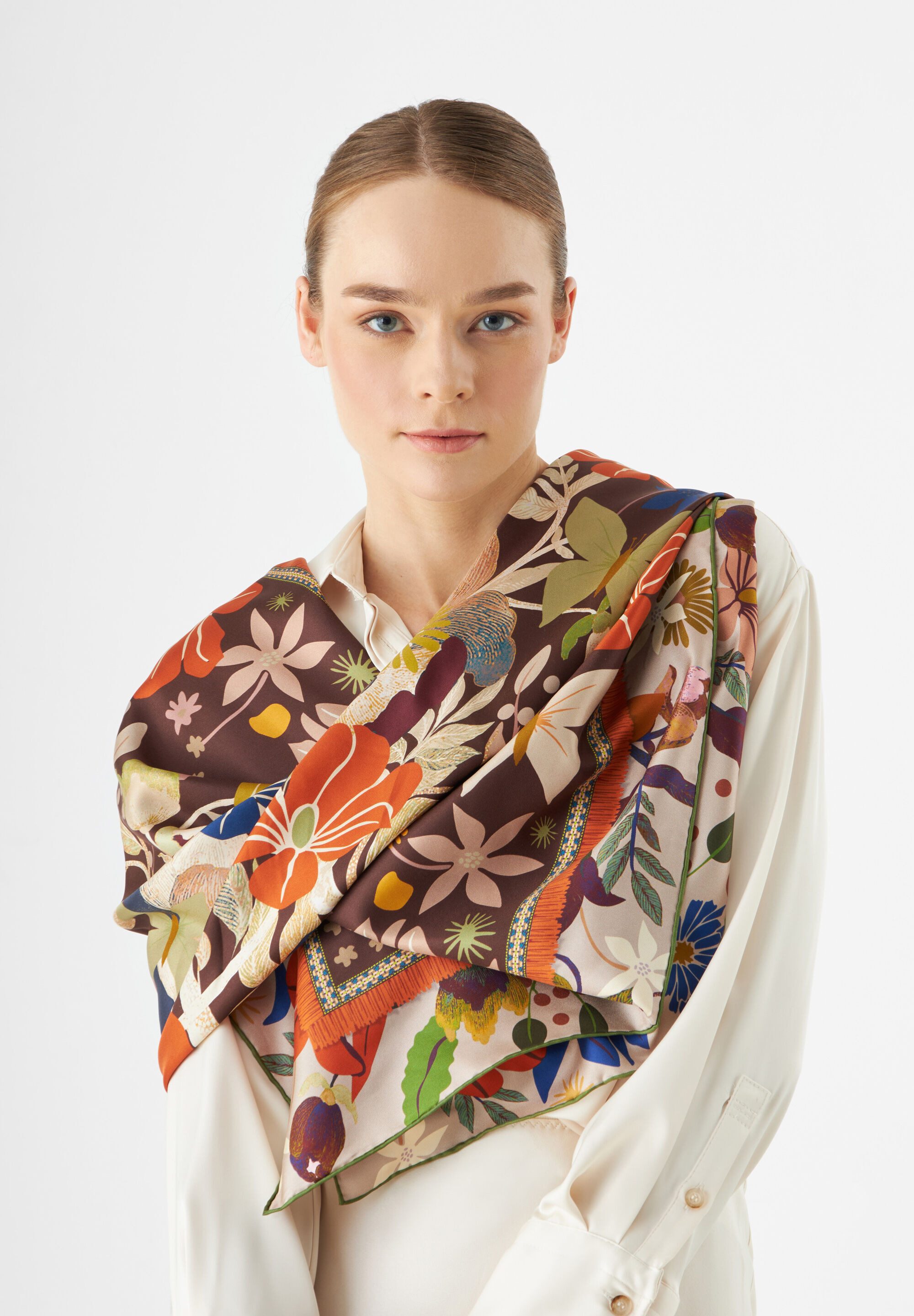 Dieses Premium Seidentuch mit zauberhaftem Blumenmuster ist immer ein edler Akzentgeber. Es lässt sich als Halstuch zum klassischen Business-Anzug stylen, veredelt Jeans-Looks und macht auch mal ins Haar ins Haar gebunden Stil-Karriere. Das beidseitig bedruckte Seidentuch wurde aus #1 PURE SILK in einer ausgewählten chinesischen Seidenmanufaktur aus wertvoller Seide gefertigt. Sie besticht durch ihren angenehm kühlen und geschmeidig weichen Griff, ihr luxuriöses Tragegefühl und eine einzigartige Farbbrillanz.
