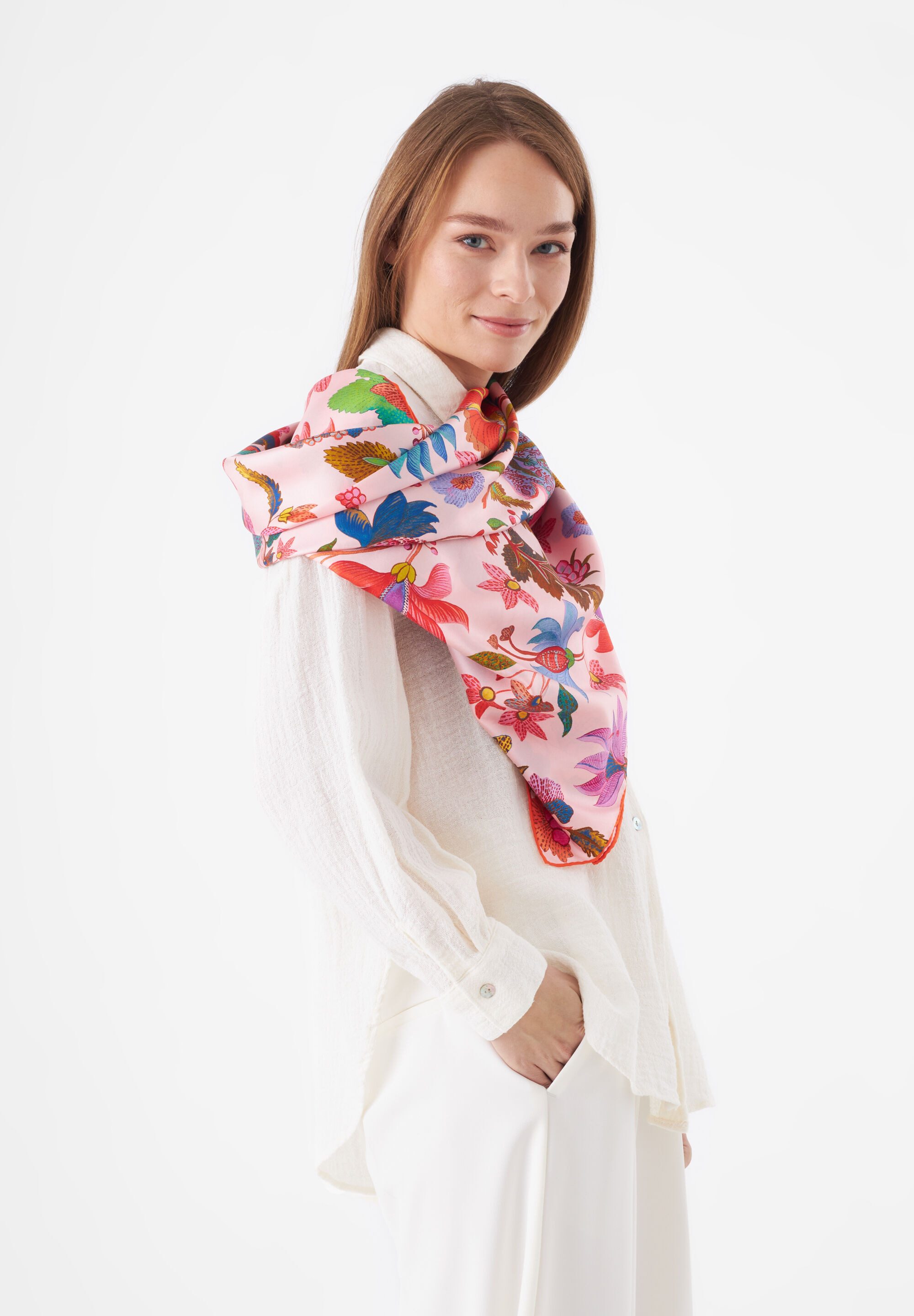 Kaum etwas rundet deinen Look stilvoller ab, als ein exklusives Seidentuch. Dieses floral designte Carré aus wertvoller, beidseitig bedruckter Seide lässt jedes Outfits sofort edel wirken. Das Tuch wurde aus # 1 PURE SILK in einer ausgewählten, chinesischen Seidenmanufaktur gefertigt, mit der uns eine langjährige Partnerschaft verbindet. Seide ist eine der wertvollsten, textilen Fasern der Welt. Wer sich für dieses hochwertige Naturmaterial entscheidet, setzt auf einen noblen Look. Das Seidentuch besticht durch seinen angenehm kühlen und geschmeidig weichen Griff, sein luxuriöses Tragegefühl und seine einzigartige Farbbrillanz.