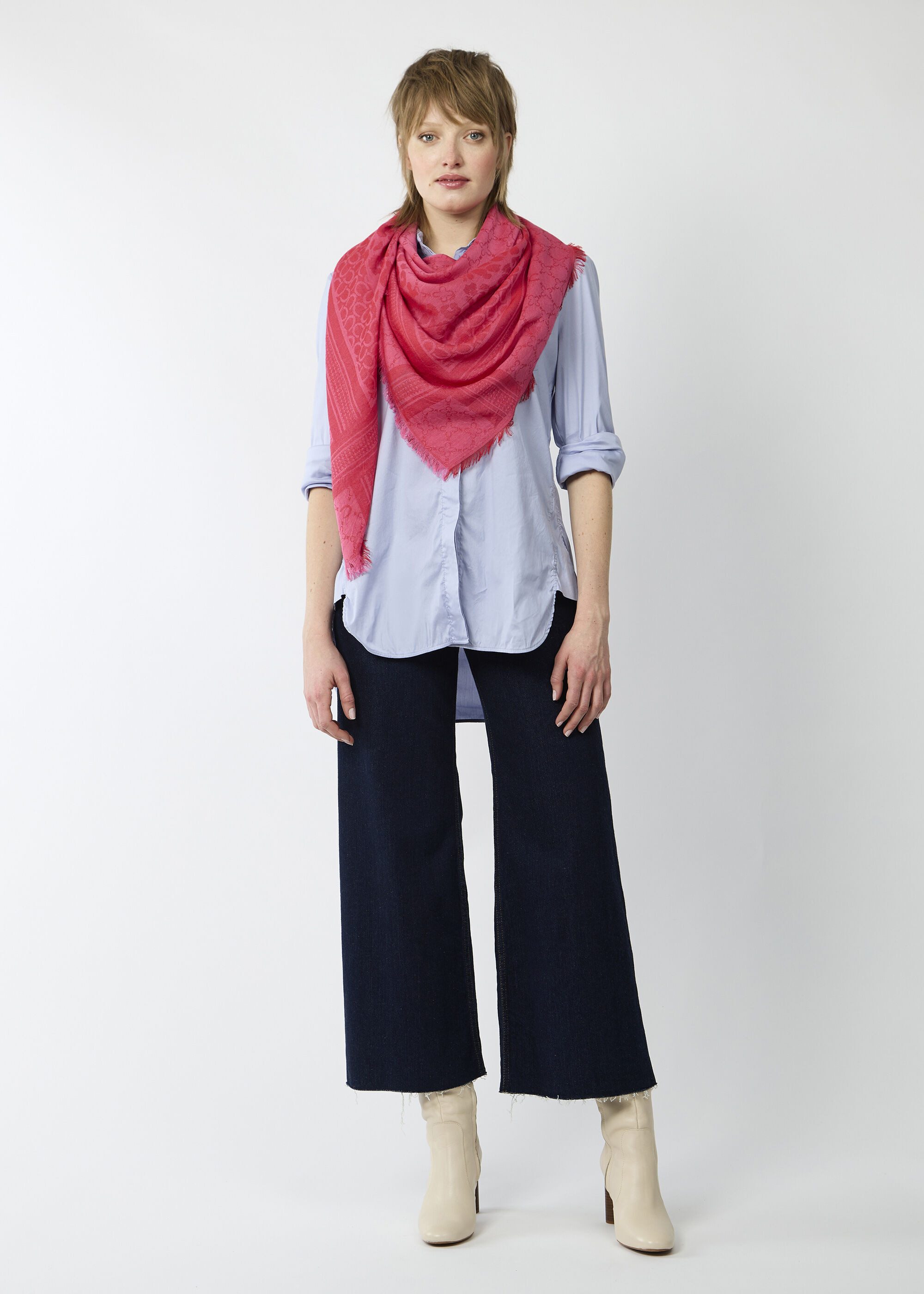 Dieses Premium Tuch aus #14 JACQUARD DE LUXE mit gewebtem Monogramm-Muster spiegelt den Codello Look unverwechselbar wider und rundet als Signature Piece deinen Look stilvoll ab. Softweich und super angenehm zu tragen ist das edle und zeitlose Jacquard-Tuch noch dazu! Jacquard nennt man eine besondere Gewebetechnik für Stoffe. Durch die Verkreuzung unterschiedlich eingefärbter Garne ist die Herstellung komplexer Muster möglich, die durch ein Spiel aus unterschiedlichen Tiefen und Schattierungen bestechen. Wir verwenden hierbei eine Mischung aus Modal und Baumwolle.