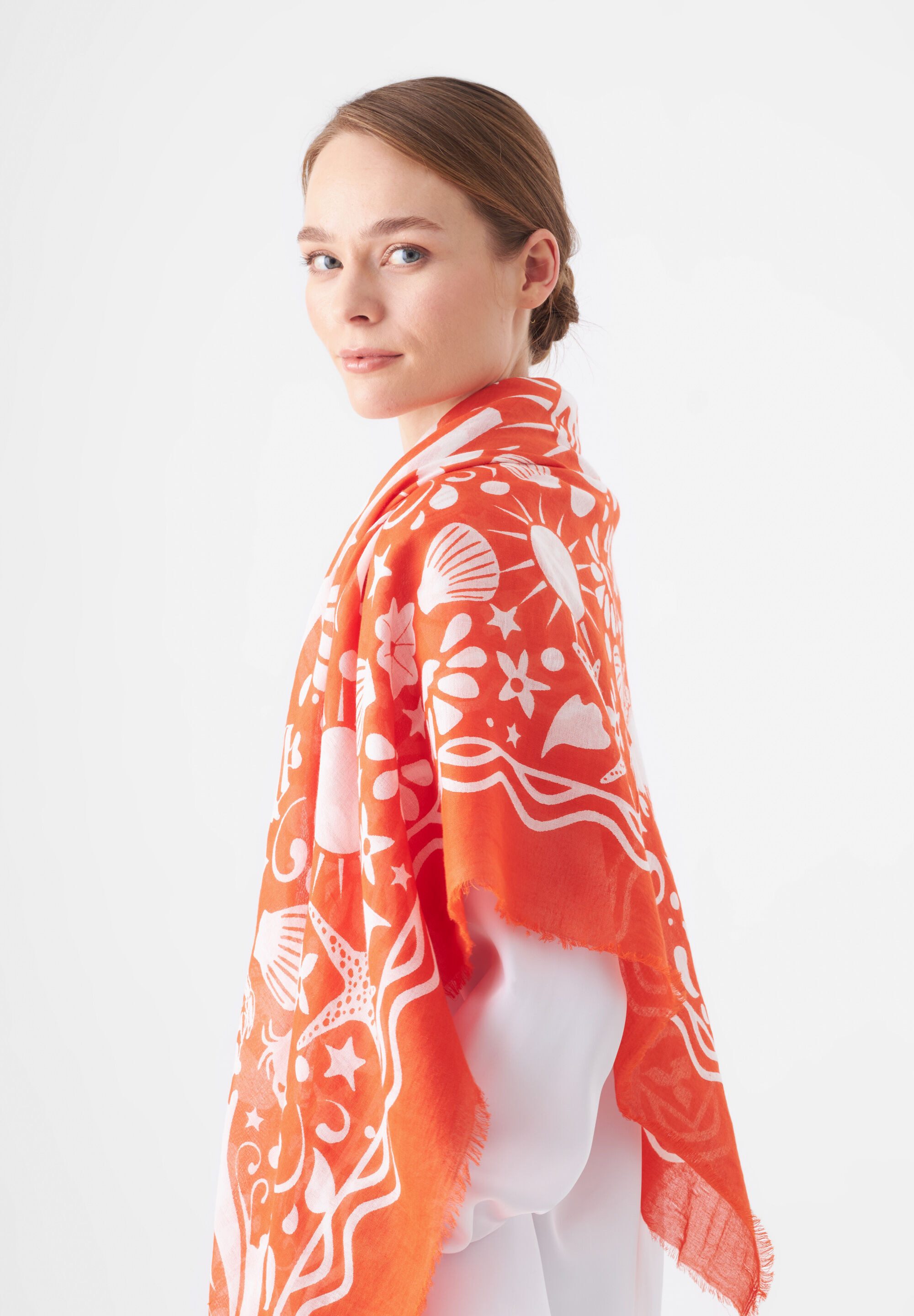 Dieses mit Seesternen, Krabben und anderen Meeres-Motiven bedruckte Tuch zaubert Urlaubsstimmung in deinen Look. Du kannst das stylische „Ciao Bella“ Tuch in die Haare binden, um den Henkel deiner Beach Bag wickeln, als Gürtel tragen oder um den Hals knoten. Lass deiner Styling-Fantasie freien Lauf. Das Tuch wurde aus Modal und Baumwolle gefertigt. Eine Qualität, die mit hohem Tragekomfort überzeugt. Modalfasern geben dem Tuch Weichheit. Der Baumwollanteil sorgt für sommerliche Luftigkeit.