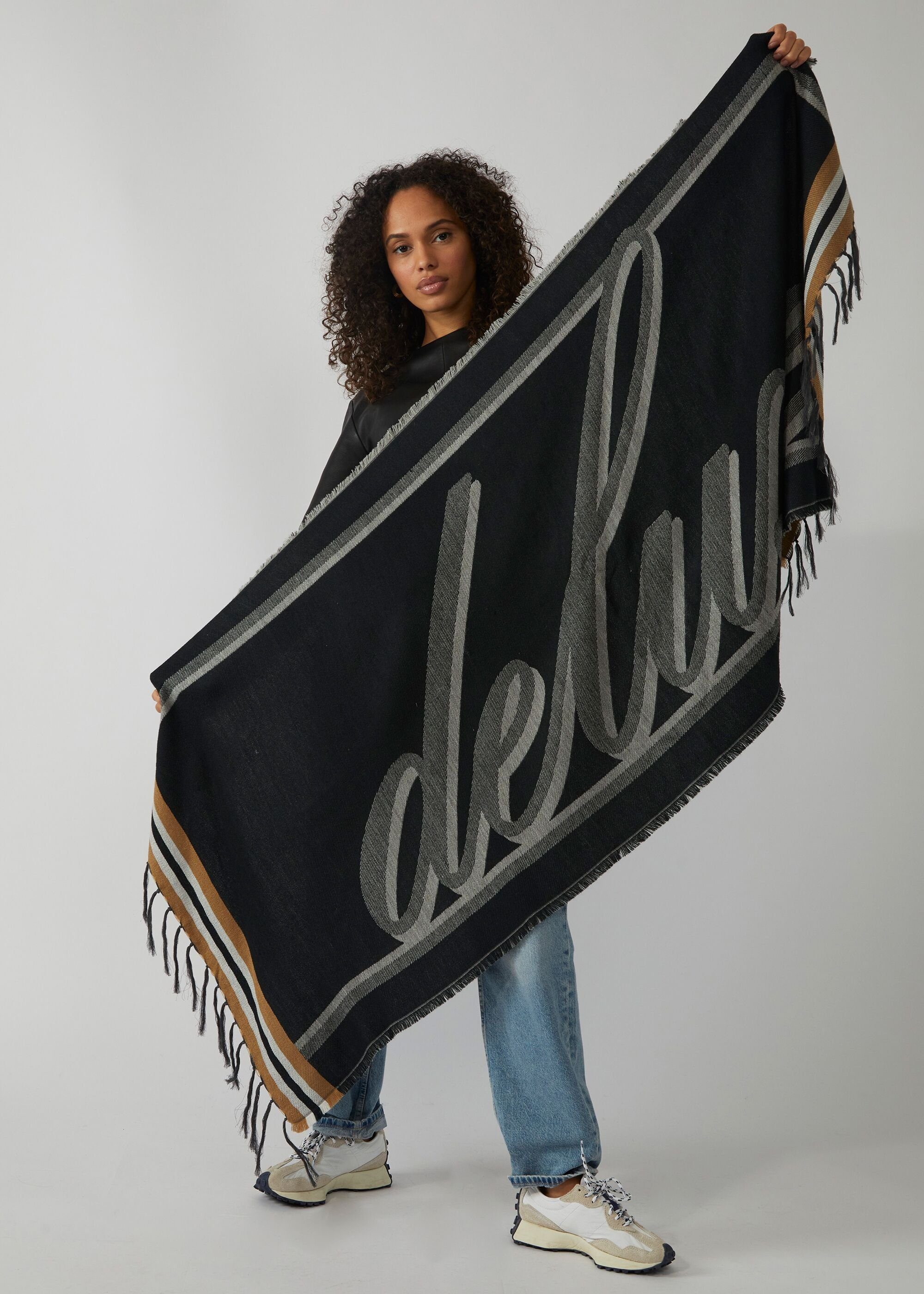 Dieser edle Jacquard-Schal aus unserer „Handmade Collection“ für die kältere Jahreszeit hält, was er spricht. Der exklusive Schal mit eingewebtem „deluxe“ Schriftzug besticht durch seinen handwerklichen Look, die besondere Haptik und seinen warmen, voluminösen Griff. Er wurde aus einer wertvollen Mischung aus Wolle, Polyacryl und Baumwolle in einer indischen Manufaktur gewebt, in der die traditionelle Jacquard-Weberei eine lange Geschichte hat.