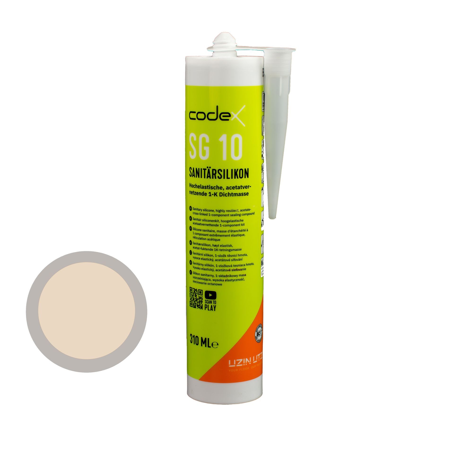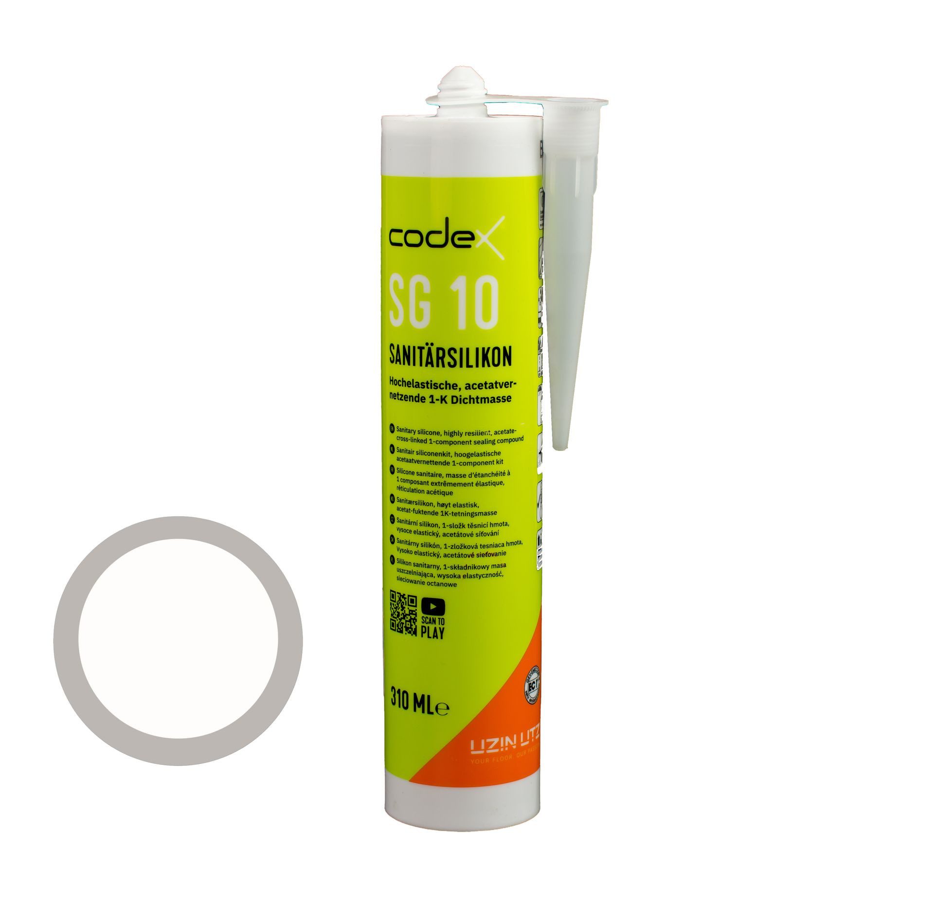 Silikon für Laminat, Designboden & Vinyl CODEX SG 10 ist ein gebrauchsfertiger, acetatvernetzender Silikondichtstoff, der durch Reaktion mit der Luftfeuchtigkeit elastisch aushärtet. Der vielseitig einsetzbare codex Fugendichtstoff ist nach abgeschlossener Aushärtung völlig geruchlos, physiologisch unbedenklich und indifferent. Der Acetat vernetzende 1K-Silicon-Dichtstoff codex SG 10 für den Sanitärbereich besticht durch die sehr guten Verarbeitungseigenschaften, leicht glättbarer Oberfläche und optimaler Haftung auf keramischen Untergründen. ANWENDUNGSBEREICHE: PRODUKTVORTEILE/PRODUKTEIGENSCHAFTEN: - zum Verfugen von Eck-, Anschluss- und Bewegungsfugen im Sanitär-, Bau- und Montagebereich - Steingut, Steinzeug, Feinsteinzeug - Keramik, Glas - Sanitärgegenstände - Küchen, Bäder, Feucht- und Nassräume - Balkone und Terassen - Wohn-, Gewerbe- und Industriebau - für den Innen- und Außenbereich - gebrauchsfertig - schnell erhärtend - hochelastisch und selbsthaftend - sehr gut glättbare Oberfläche -pilzhemmende und antibakterielle Eigenschaften - UV-, witterungs- und alterungsbeständig - erfüllt die Anforderungen nach DIN EN 15651 - 1, 2, 3, 4 Спецификации товара (на немецком) (https://de.codex-x.com/fileadmin/MAM/88585/codex_PDS_SG_10_DE_2022-01.pdf)