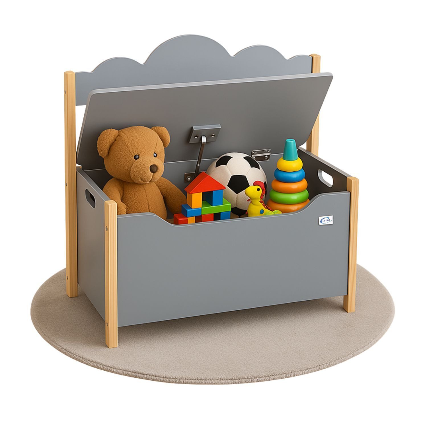 Unter der stabilen Sitzfläche befindet sich eine geräumige Box, in der Spielsachen, Bücher oder Kuscheltiere verschwinden, wenn es schnell ordentlich aussehen soll. Die seitlichen Griffe machen es Kindern leicht, den Deckel selbst zu öffnen. Ein eingebautes Sicherheitsscharnier schützt dabei kleine Finger vor dem Einklemmen. Die niedrige Sitzhöhe ist ideal für Kinder und macht TRUDI zu einem praktischen Begleiter beim Spielen, Lesen oder Schuheanziehen. Was anfangs nur eine praktische Truhe ist, wird bald zu einem festen Bestandteil des Zimmers – ein kleiner Ort, den die Kinder ganz selbstverständlich in ihren Alltag einbeziehen.