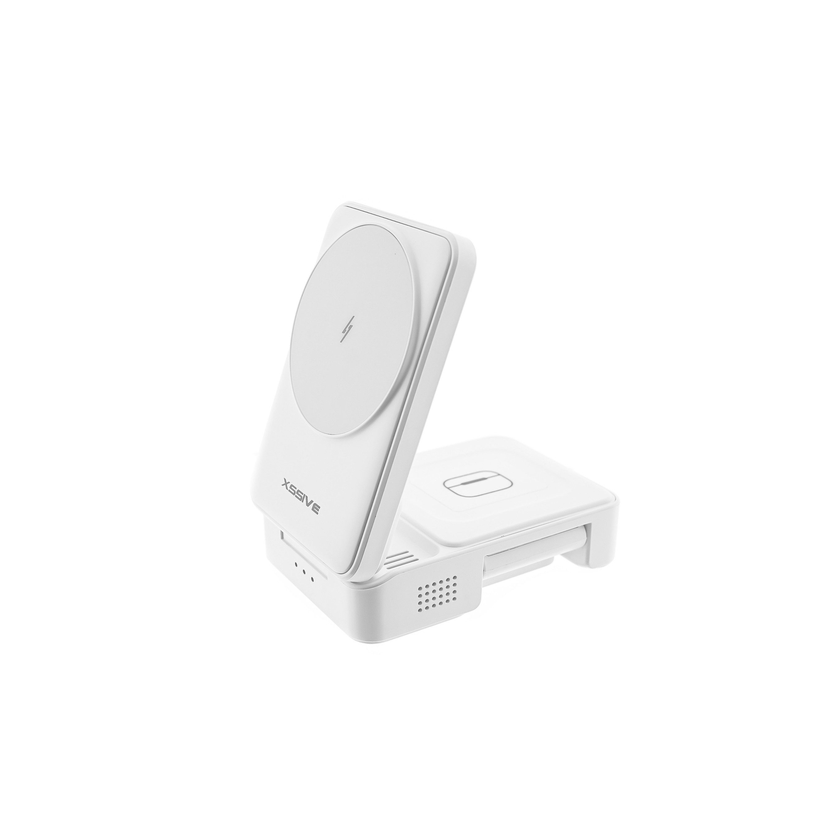 Die 3in1 Magnetische Induktions-Wireless-Ladestation kombiniert durchdachtes Design mit fortschrittlicher Technologie. Dank der starken Magnetkraft bleiben Ihre Geräte sicher an ihrem Platz, während die intelligente Identifikation den Ladevorgang automatisch anpasst, um maximale Effizienz und Sicherheit zu gewährleisten.
