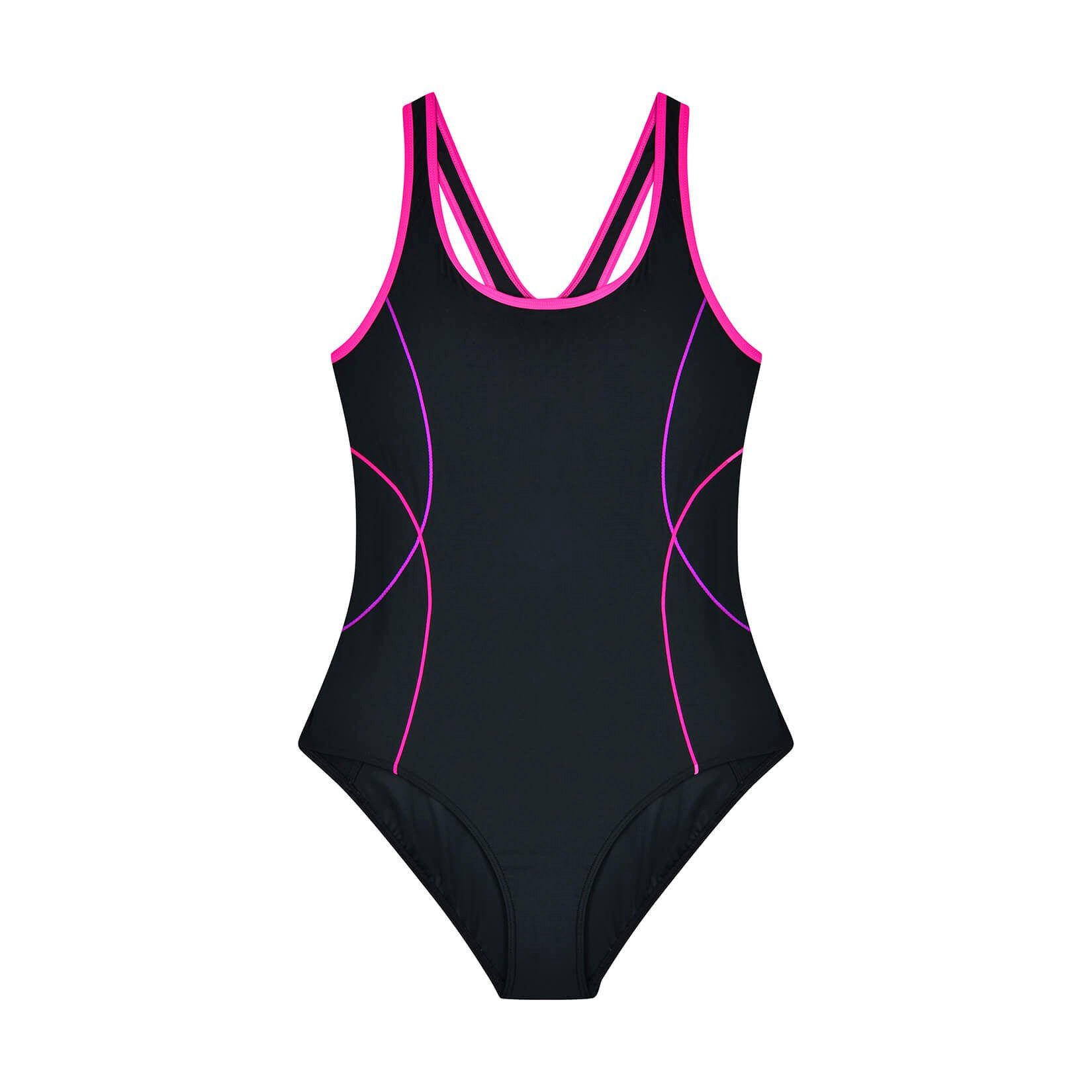 Der sportliche Racerback-Badeanzug ist aus strapazierfähigem und dehnbarem Stoff gefertigt, der schlüssellochförmige Rücken und die breiten Schulterträger reduzieren den Druck auf die Schultern und ermöglichen volle Bewegungsfreiheit.