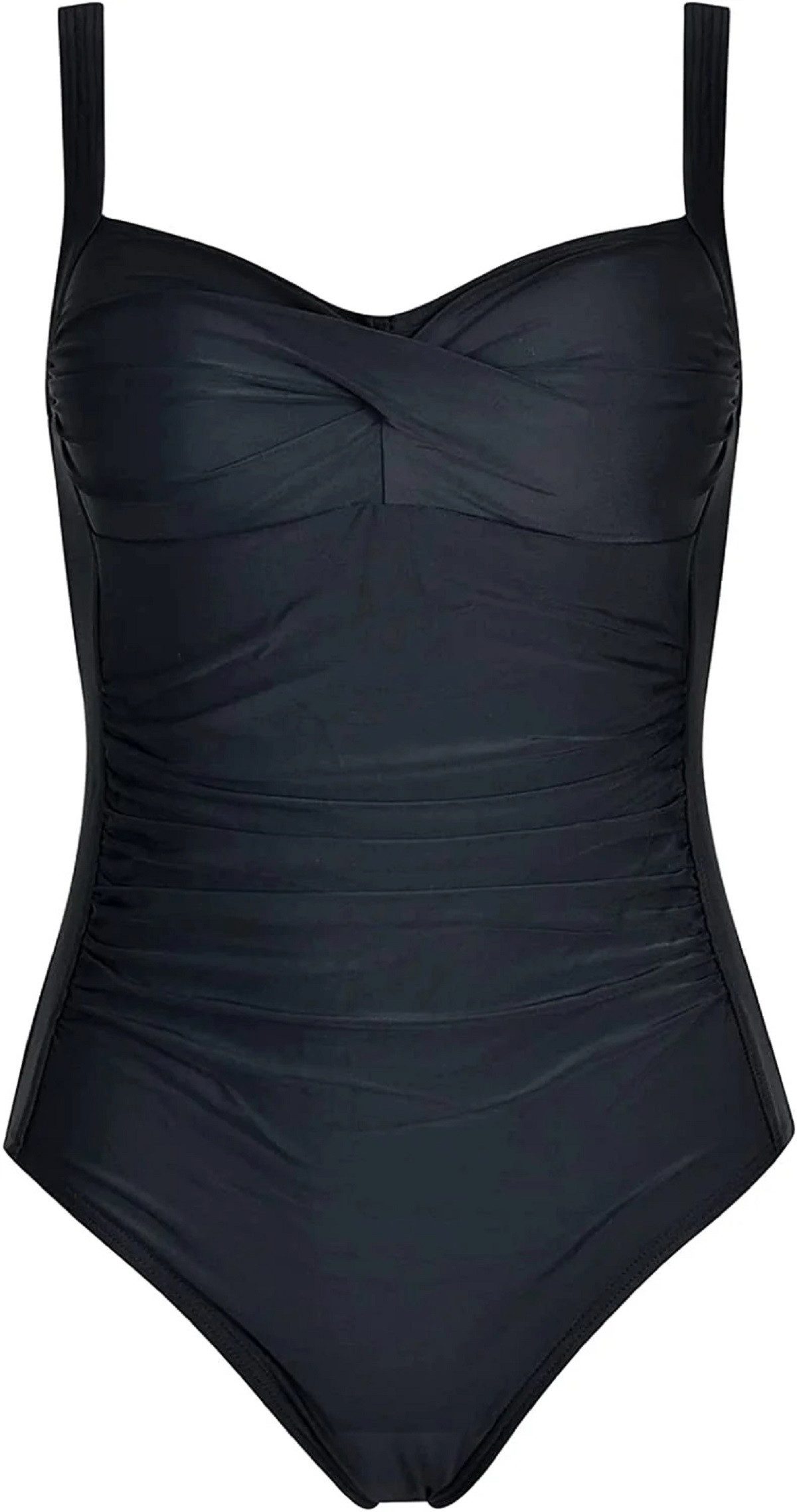 Erleben Sie erstklassigen Komfort und eine schlank machende Silhouette mit unserem schwarzen Magic-Bauchkontrolle Bügel-Badeanzug. Dieser stilvolle einteilige Badeanzug kombiniert eine klassische Passform mit modernen Funktionalitäten, um Ihnen sowohl Eleganz als auch Unterstützung zu bieten. Die multifunktionalen Cups und das eingearbeitete Powermesh sorgen für eine perfekte Passform, während das Formteil Ihre Figur in Szene setzt.