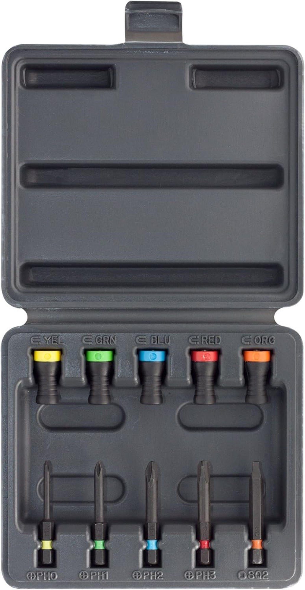 Dieses 10-teilige Set enthält alle Arten von Magnet Drivers® und die entsprechenden Bits, um jede Arbeit mit Schrauben zu verrichten. Das sofort verwendbare Set beinhaltet eine Box, sodass Sie das gesamte Material perfekt organisiert und ordentlich aufbewahren können. Die perfekte Lösung, um die Magnet-Driver®-Teile nicht zu verlieren. Die Box enthält: 1 gelben Magnet Driver® für runde Schrauben mit einem Durchmesser von 2-3 mm, 1 grünen Magnet Driver® für runde Schrauben mit einem Durchmesser von 4,5-5 mm, 1 blauen Magnet Driver® für runde Schrauben mit einem Durchmesser von 5,5-6 mm, 1 roten Magnet Driver® für runde Schrauben mit einem Durchmesser von 6-6,35 mm, 1 orangefarbenen Magnet Driver® für Sechskantschrauben mit einem Durchmesser von 6-6,35 mm, auch für Nägel, 1 Kreuz-Aufsatz PH0 Длина 50 mm in Gelb aus gehärtetem Stahl S2, 1 grünen Kreuz-Aufsatz PH1 mit Длина 50 mm aus gehärtetem Stahl S2, 1 Kreuz-Aufsatz PH2 mit Длина 50 mm in Blau aus gehärtetem Stahl S2, 1 roten Kreuz-Aufsatz PH3 mit Длина 50 mm aus gehärtetem Stahl S2, 1 Aufsatz SQ2 mit Длина 50 mm in Orange aus gehärtetem Stahl S2