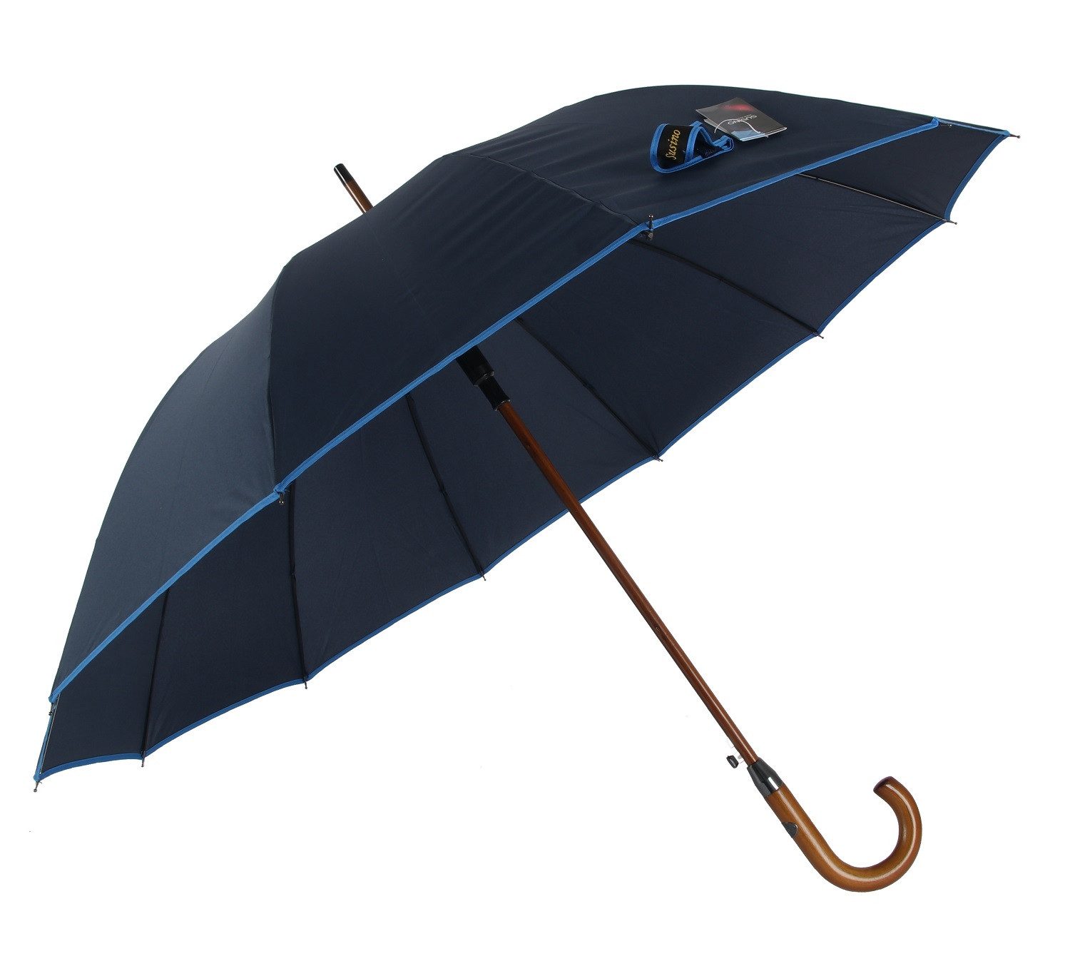 Mit unserem Stockregenschirm erleben Sie Komfort und Stil, selbst an regnerischen Tagen. Der Schirm verfügt über einen eleganten Holzgriff, der nicht nur gut in der Hand liegt, sondern auch ein zeitloses Design verleiht. Dank der robusten Fiberglasstange ist der Schirm besonders stabil und widerstandsfähig gegen Windböen. Mit einem Durchmesser von 116 cm bietet er großflächigen Schutz vor Regen und Nässe. Der automatische Öffnungsmechanismus ermöglicht ein müheloses Öffnen des Schirms bei Bedarf. Durch seine kompakte Размер und sein leichtes Gewicht ist er einfach zu transportieren und praktisch in der Handhabung.