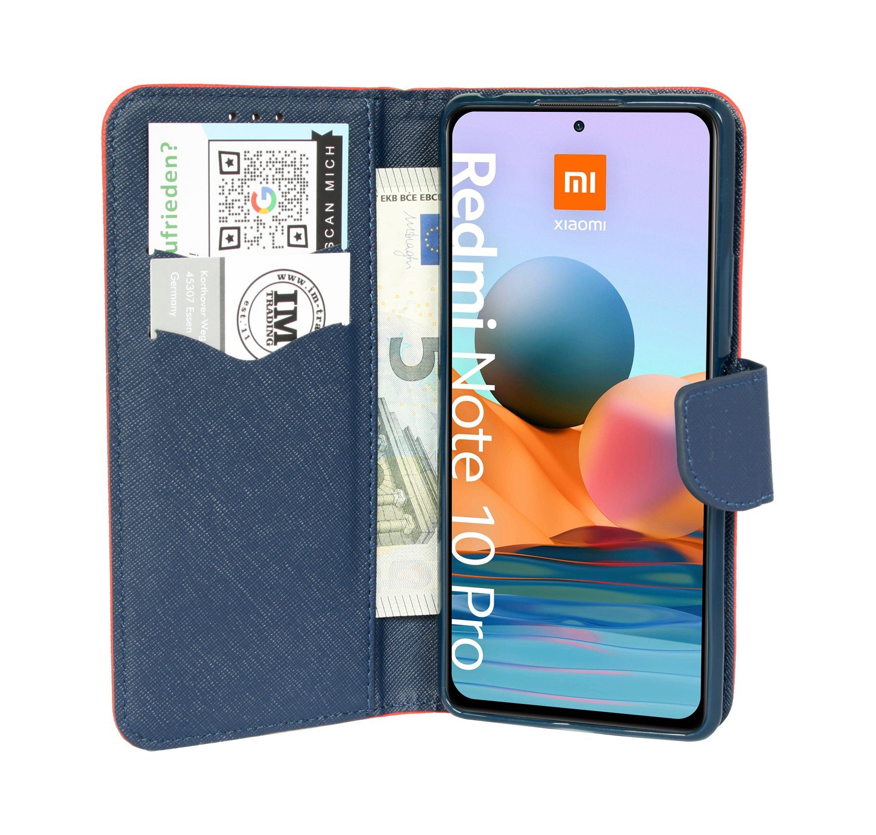 1x Bookstyle-Tasche für das Xiaomi Redmi Note 10 Pro Max in Rot-Blau