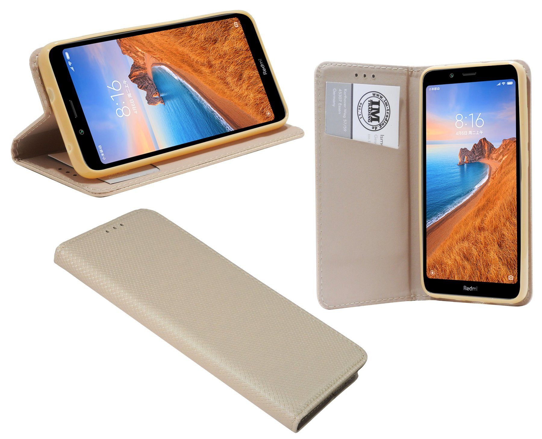 Elegante Buch-Tasche für das Xiaomi Redmi 7A mit EC-/ Kreditkarten Fächer und integrierter Standfunktion