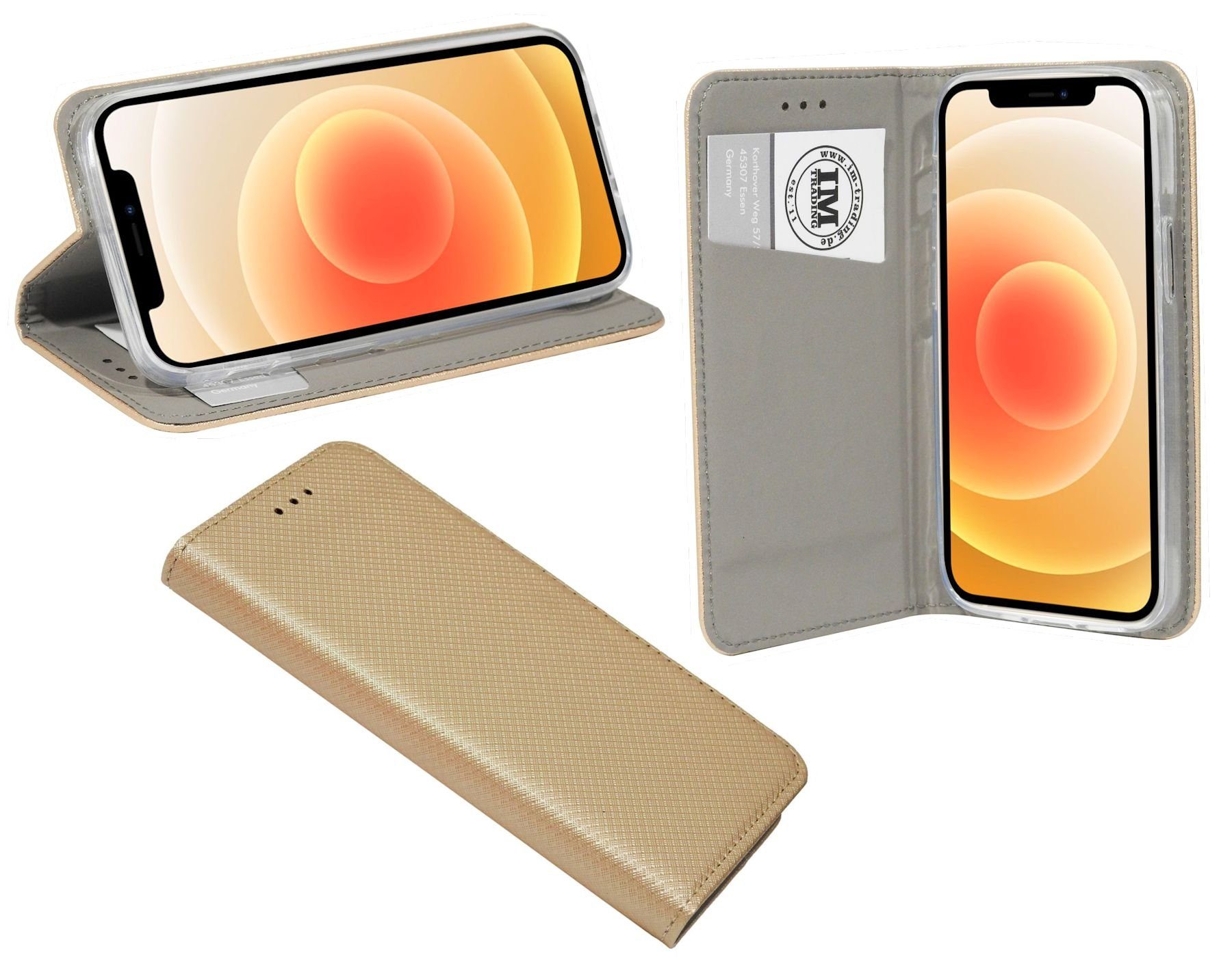 Elegante Buch-Tasche für das iPhone 12 Mini mit EC-/ Kreditkarten Fächer und integrierter Standfunktion