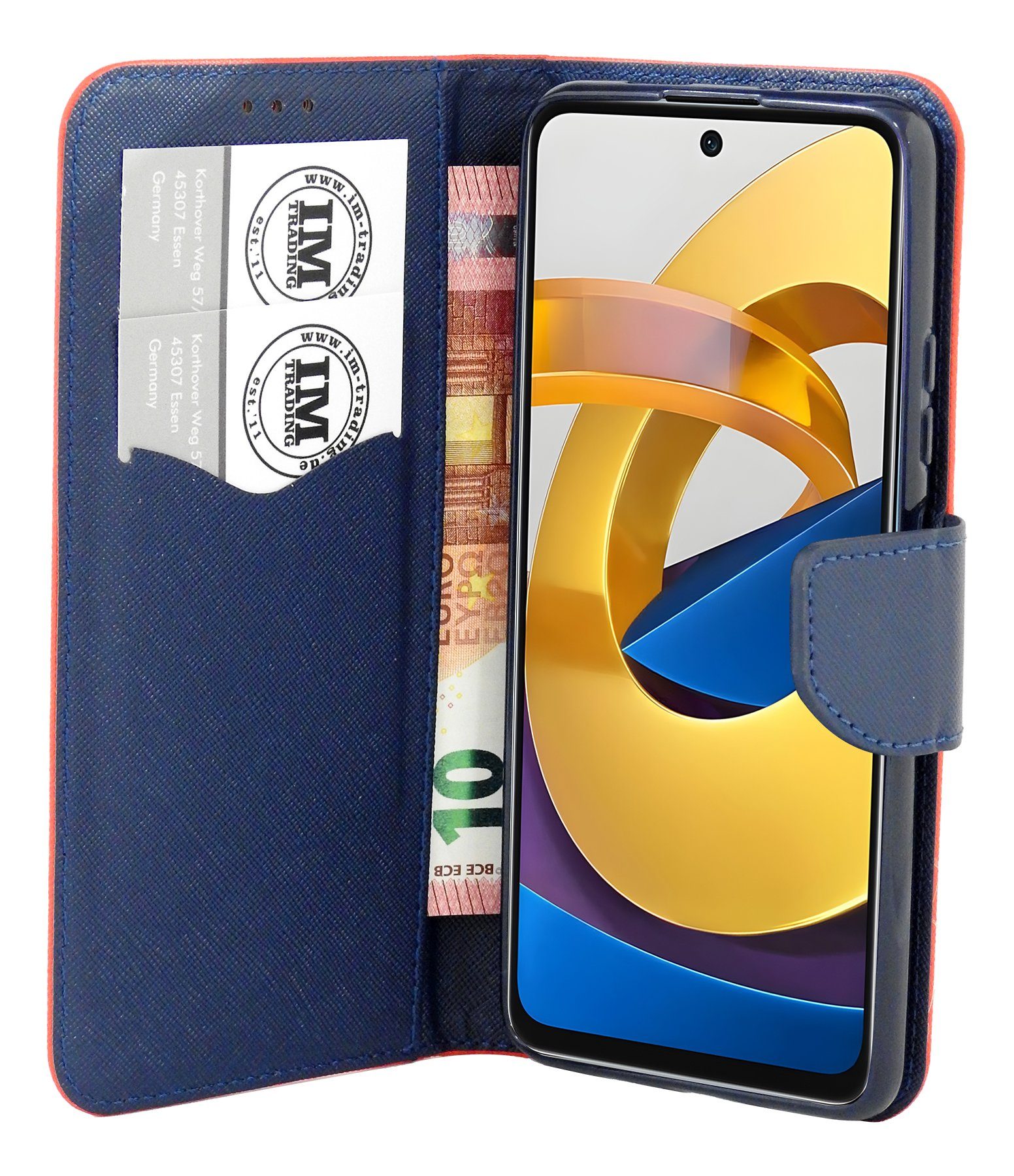 1x Bookstyle-Tasche für das XIAOMI POCO M4 PRO 5G in Rot-Blau