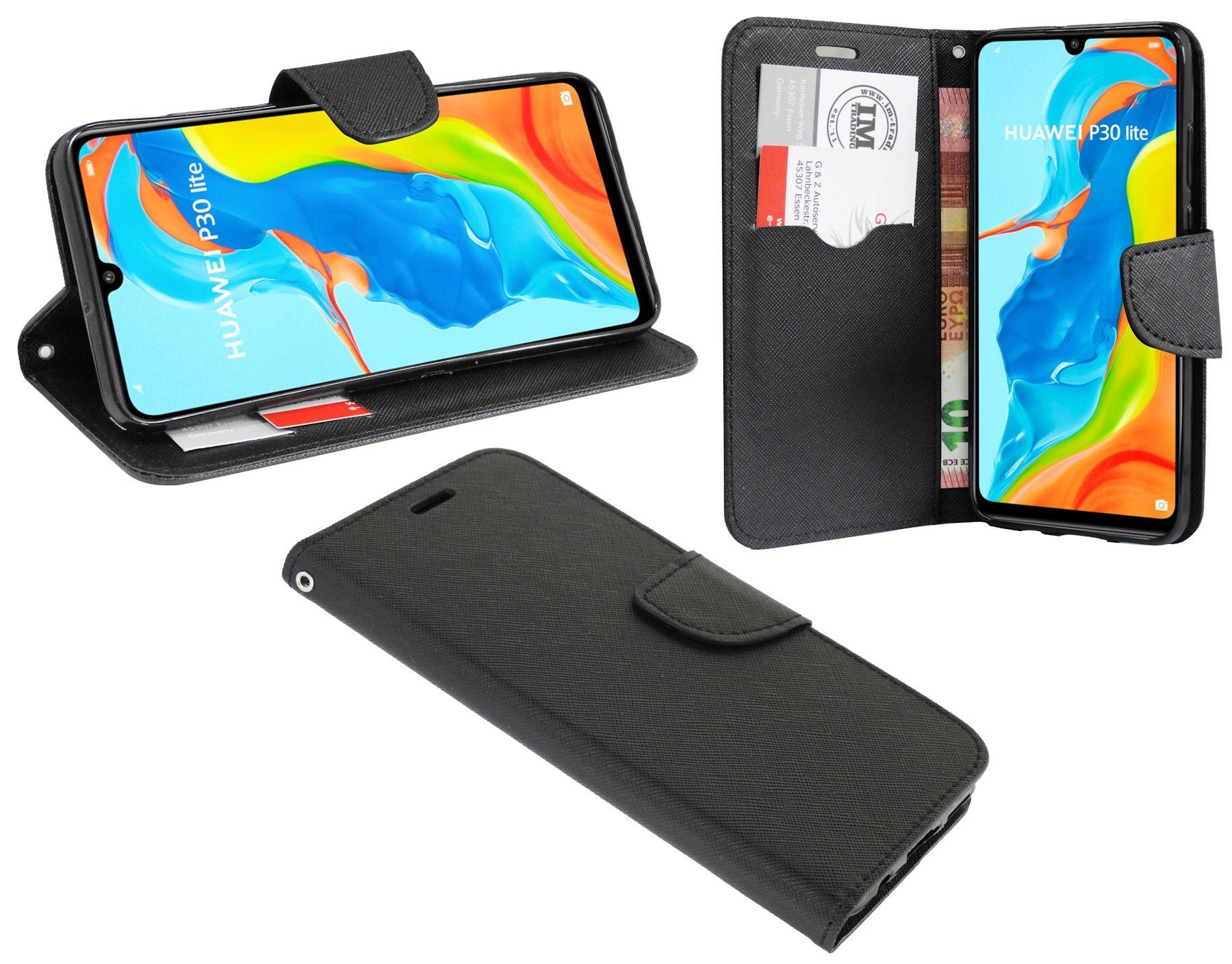 1x Bookstyle-Tasche für das Huawei P30 LITE in Schwarz