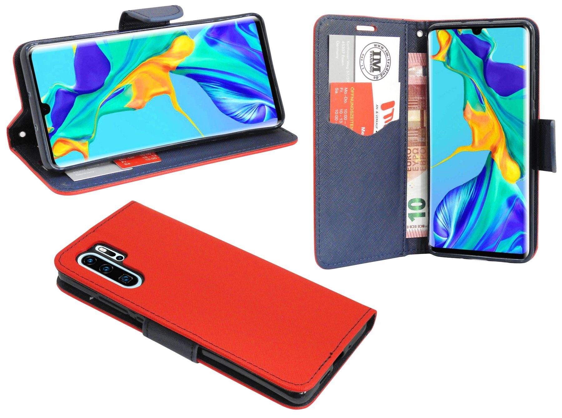 1x Bookstyle-Tasche für das Huawei P30 PRO in Rot-Blau ( 2-Farbig )
