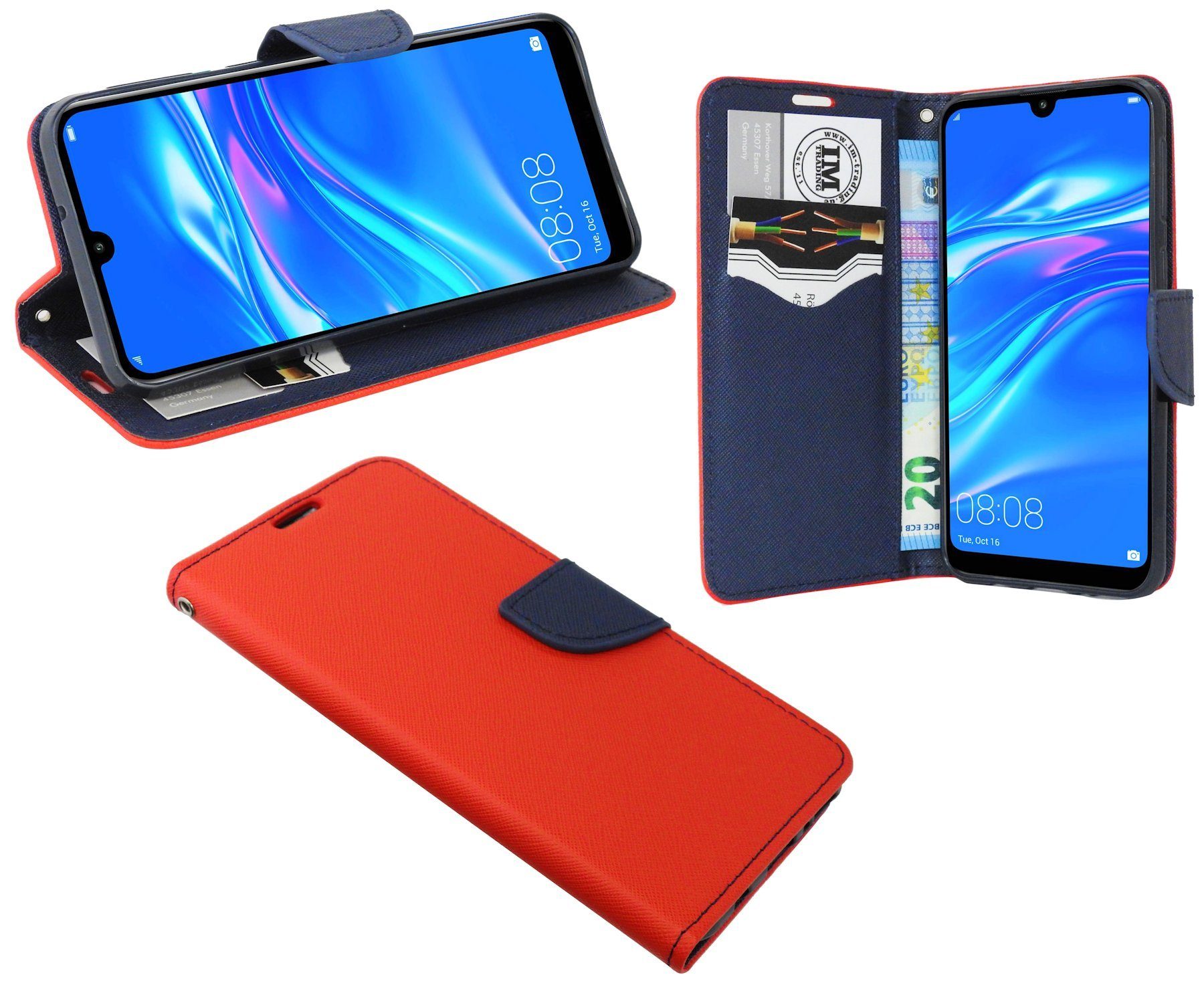 1x Bookstyle-Tasche für das Huawei Y7 2019 in Rot-Blau ( 2-Farbig )
