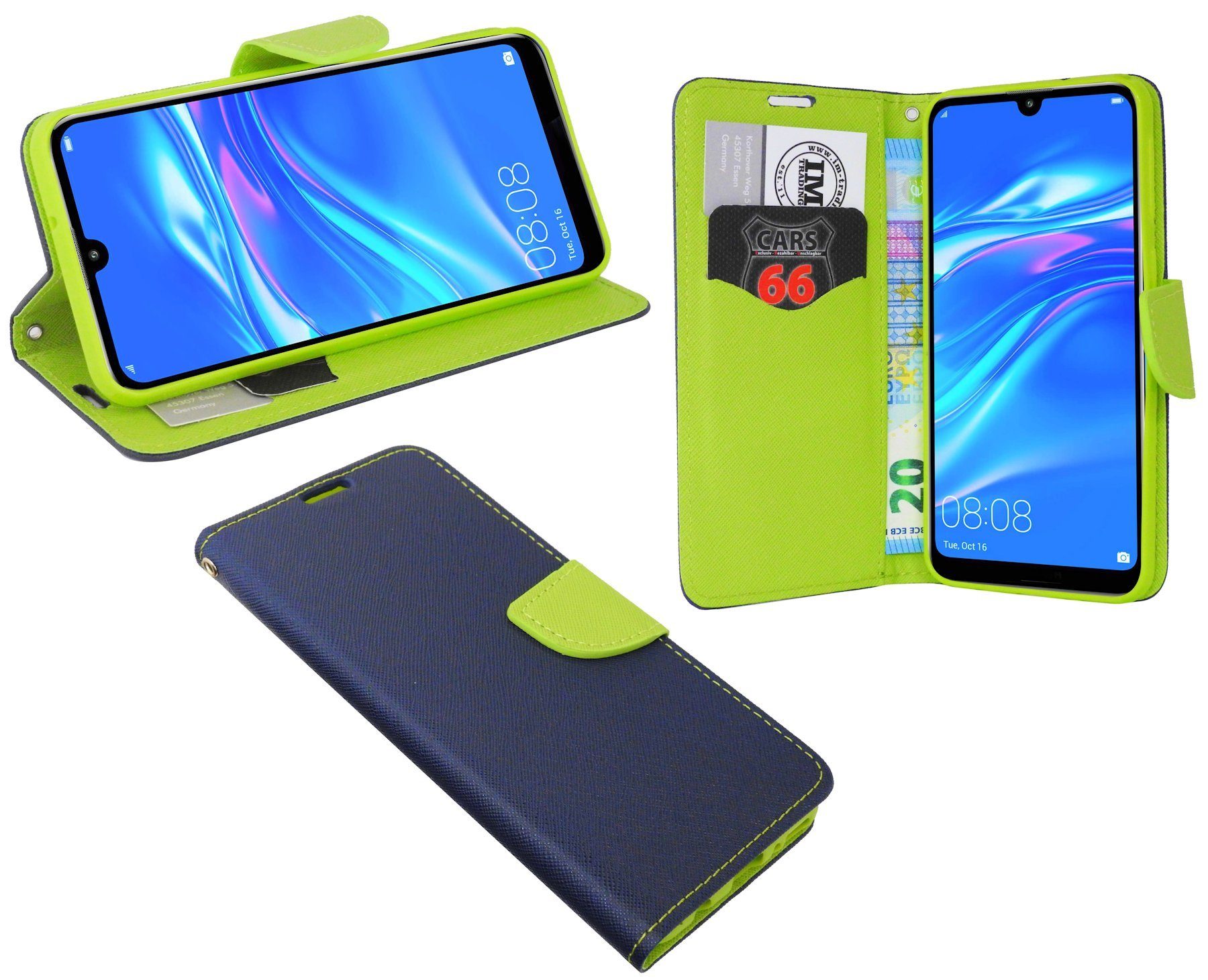 1x Bookstyle-Tasche für das Huawei Y7 2019 in Blau-Grün ( 2-Farbig )