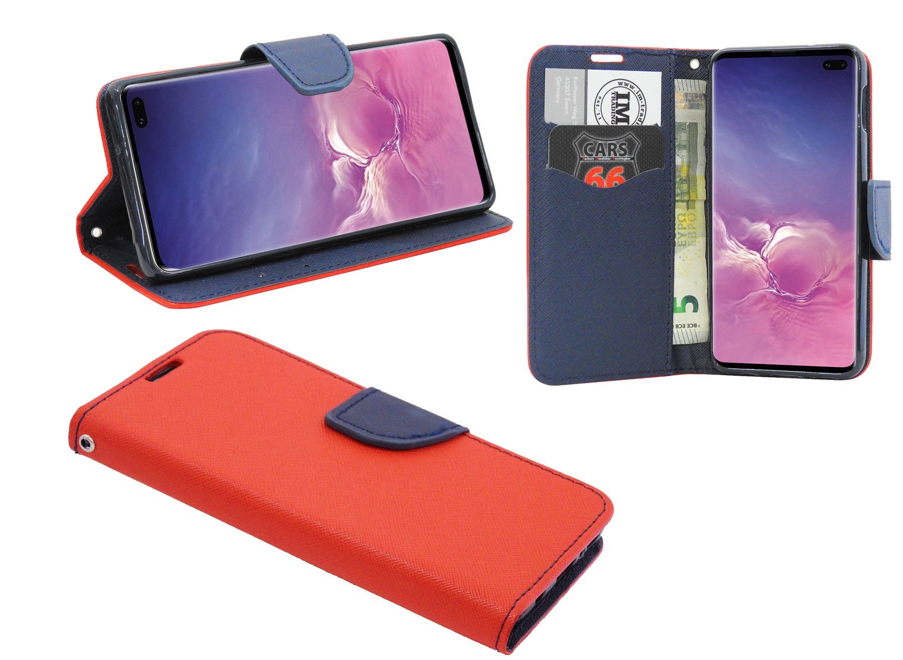 1x Bookstyle-Tasche für das Samsung Galaxy S10 Plus G975F in Rot-Blau ( 2-Farbig )