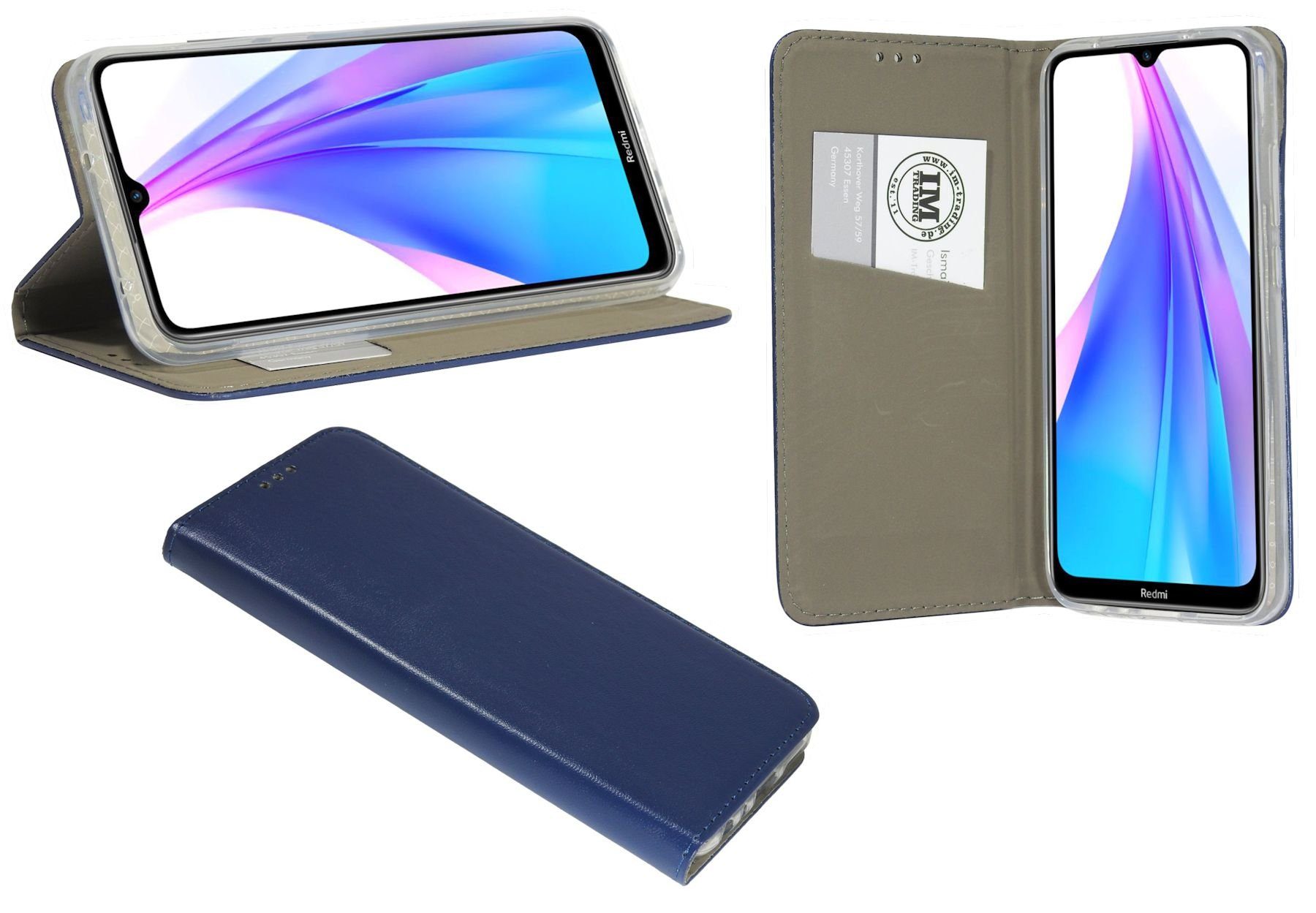 Lieferumfang:1x Bookstyle-Tasche kompatibel mit Xiaomi Redmi Note 8T in ihrer Wunschfarbe