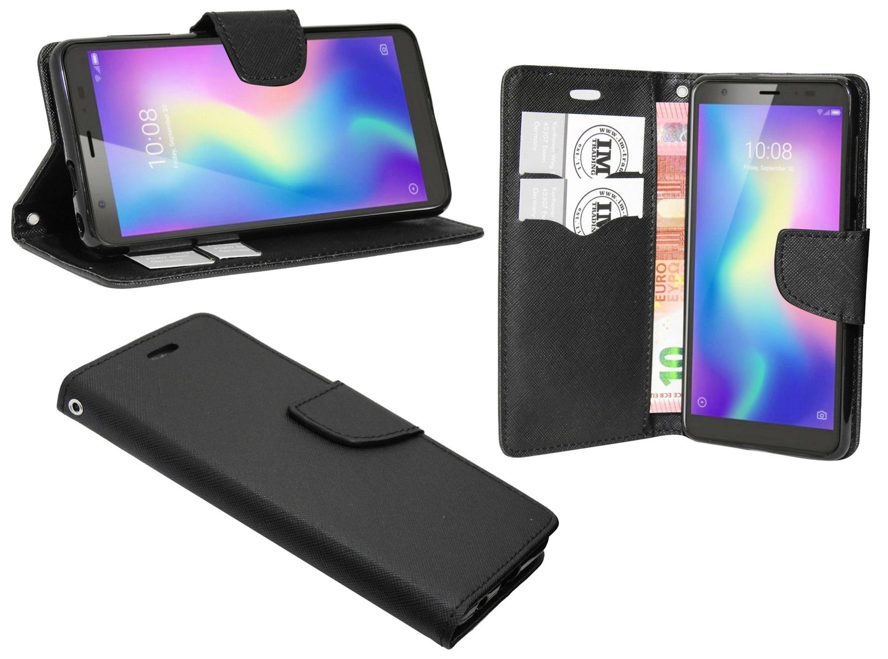 1x Bookstyle-Tasche für das ZTE BLADE A5 2019 in Schwarz