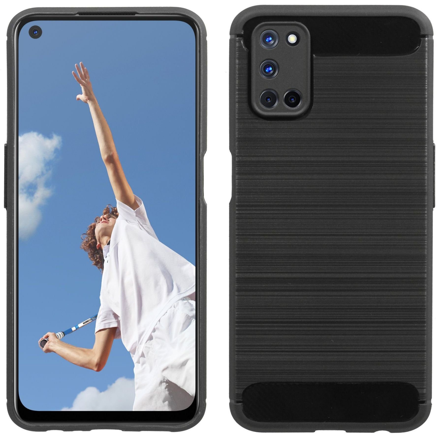 1 x Tpu Silikon Hülle in Carbon-Schwarz für das Oppo A52