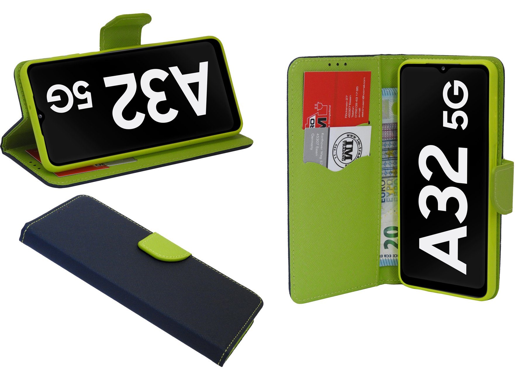 1x Bookstyle-Tasche für das Samsung Galaxy A04s in Blau-Grün ( 2-Farbig )