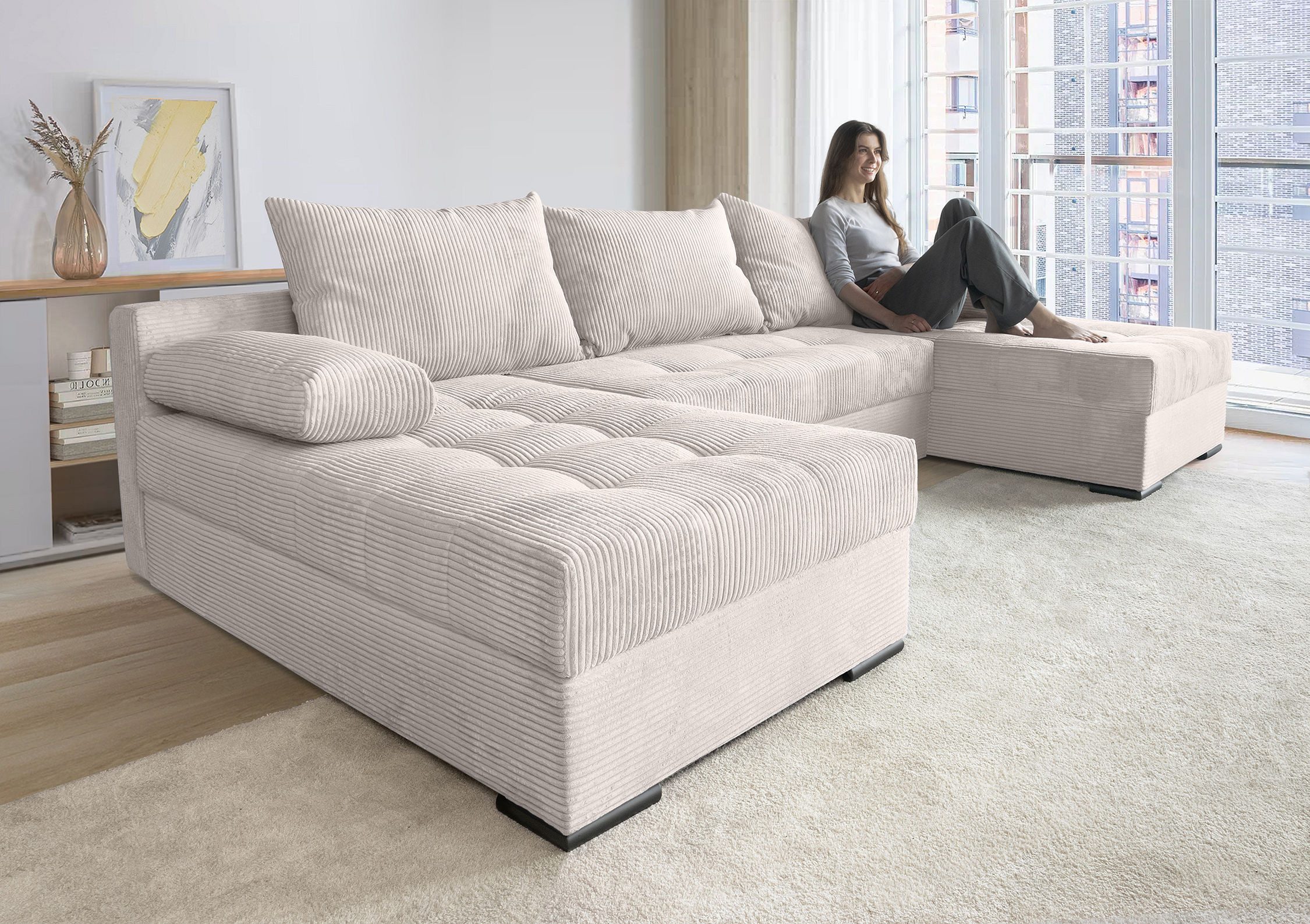 Eine elastische und formbeständige Sitzoberfläche bekommst du mit dieser Wohnlandschaft »Josy U-Form, B: 269 cm« von COLLECTION AB, die mit langlebiger Federkern-Polsterung ausgestattet ist. Zudem kann das Möbelstück ein separates Gästebett ersetzen und somit Platz einsparen, denn sie ist mit einem praktischen Bettkasten versehen. Wovon du auch profitierst, ist das passende Rückenkissen, das das Sofa noch komfortabler macht. Die Recamiere kann entweder auf der linken oder auf rechten Seite angebracht werden. Die Microfaser PRIMABELLE® zeichnet sich durch feine Fasern und gute Pflegeeigenschaften aus.