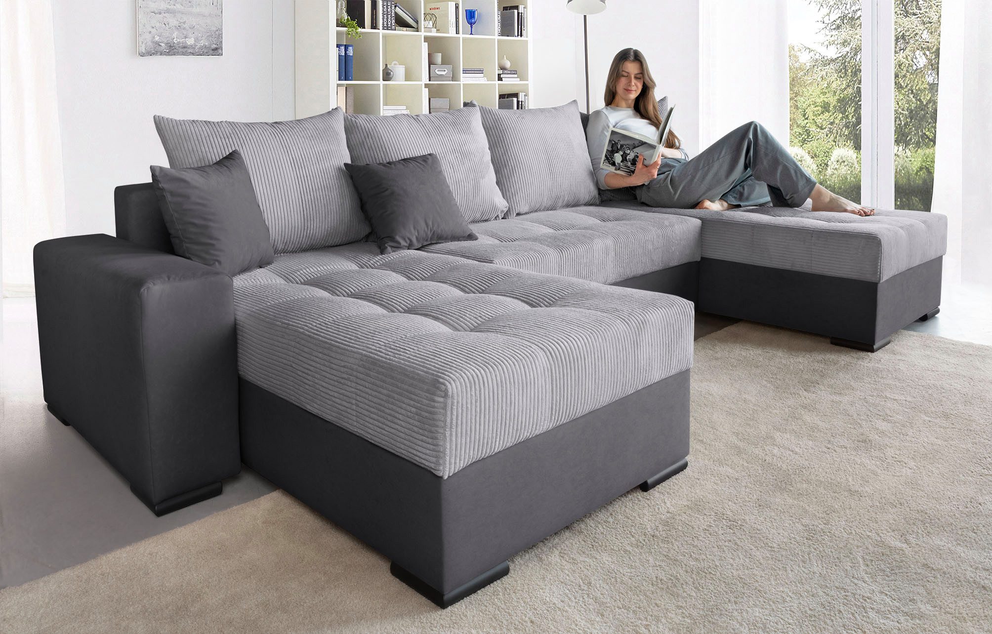Eine elastische und formbeständige Sitzoberfläche bekommst du mit dieser Wohnlandschaft von COLLECTION AB, die mit langlebiger Federkern-Polsterung ausgestattet ist. Außerdem kann das Möbelstück ein separates Gästebett ersetzen und somit Platz einsparen, denn sie ist mit einem praktischen Bettkasten versehen. Ein weiterer Vorteil ist das passende Rückenkissen, die nicht nur schöne Deko-Element sind, sondern auch für noch mehr Komfort sorgen. Die schwarzen Füße aus Kunststoff sind belastbar und äußerst formstabil.