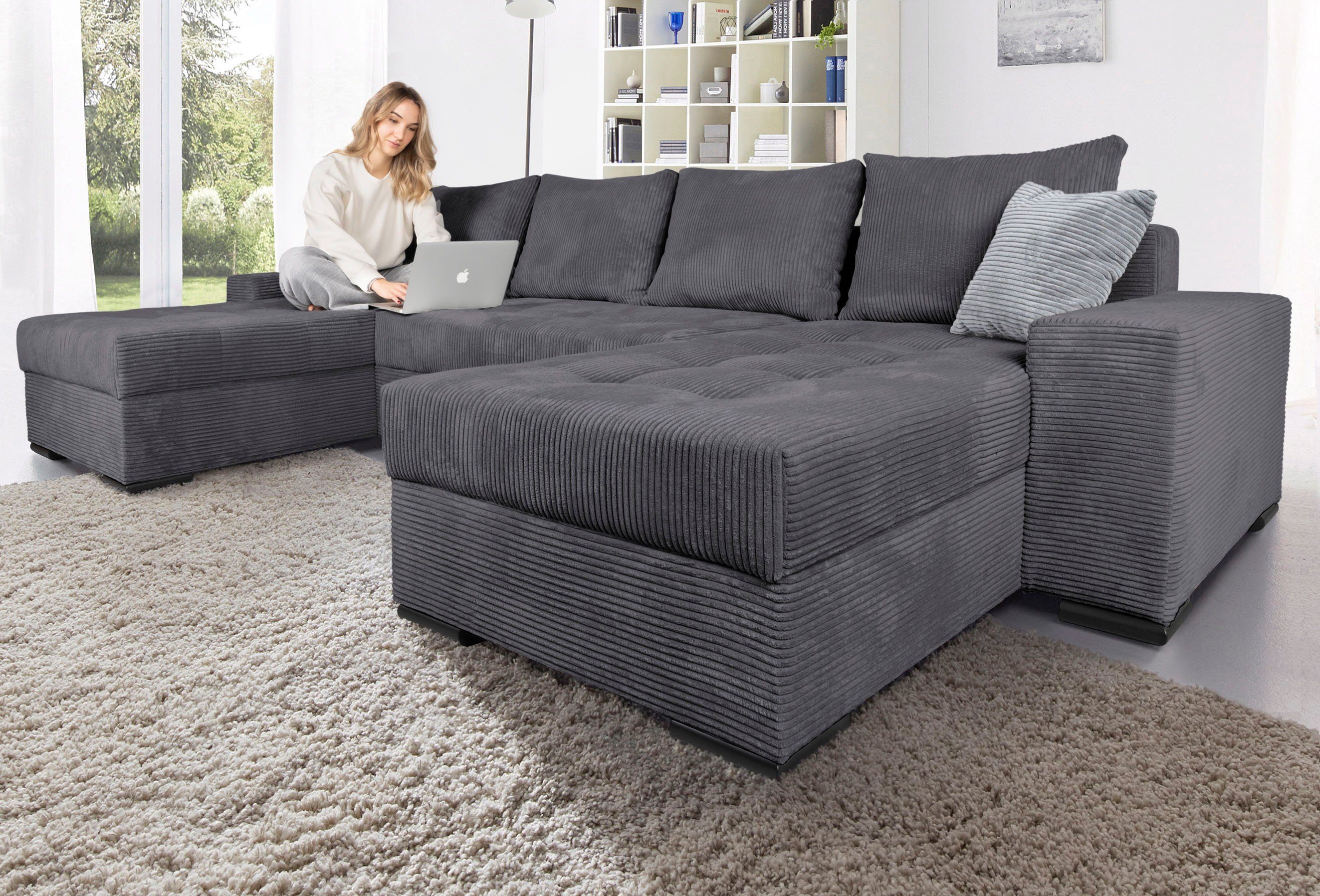 Eine elastische und formbeständige Sitzoberfläche bekommst du mit dieser Wohnlandschaft von COLLECTION AB, die mit langlebiger Federkern-Polsterung ausgestattet ist. Außerdem kann das Möbelstück ein separates Gästebett ersetzen und somit Platz einsparen, denn sie ist mit einem praktischen Bettkasten versehen. Ein weiterer Vorteil ist das passende Rückenkissen, die nicht nur schöne Deko-Element sind, sondern auch für noch mehr Komfort sorgen. Die schwarzen Füße aus Kunststoff sind belastbar und äußerst formstabil.