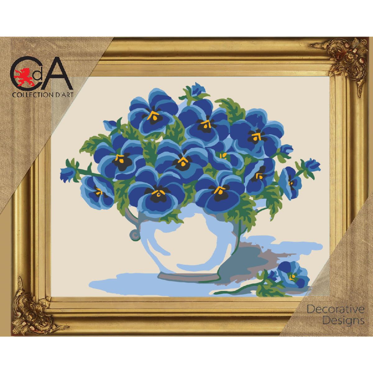CDA Halbkreuz Stickpackung bedruckt "Stiefmütterchen "