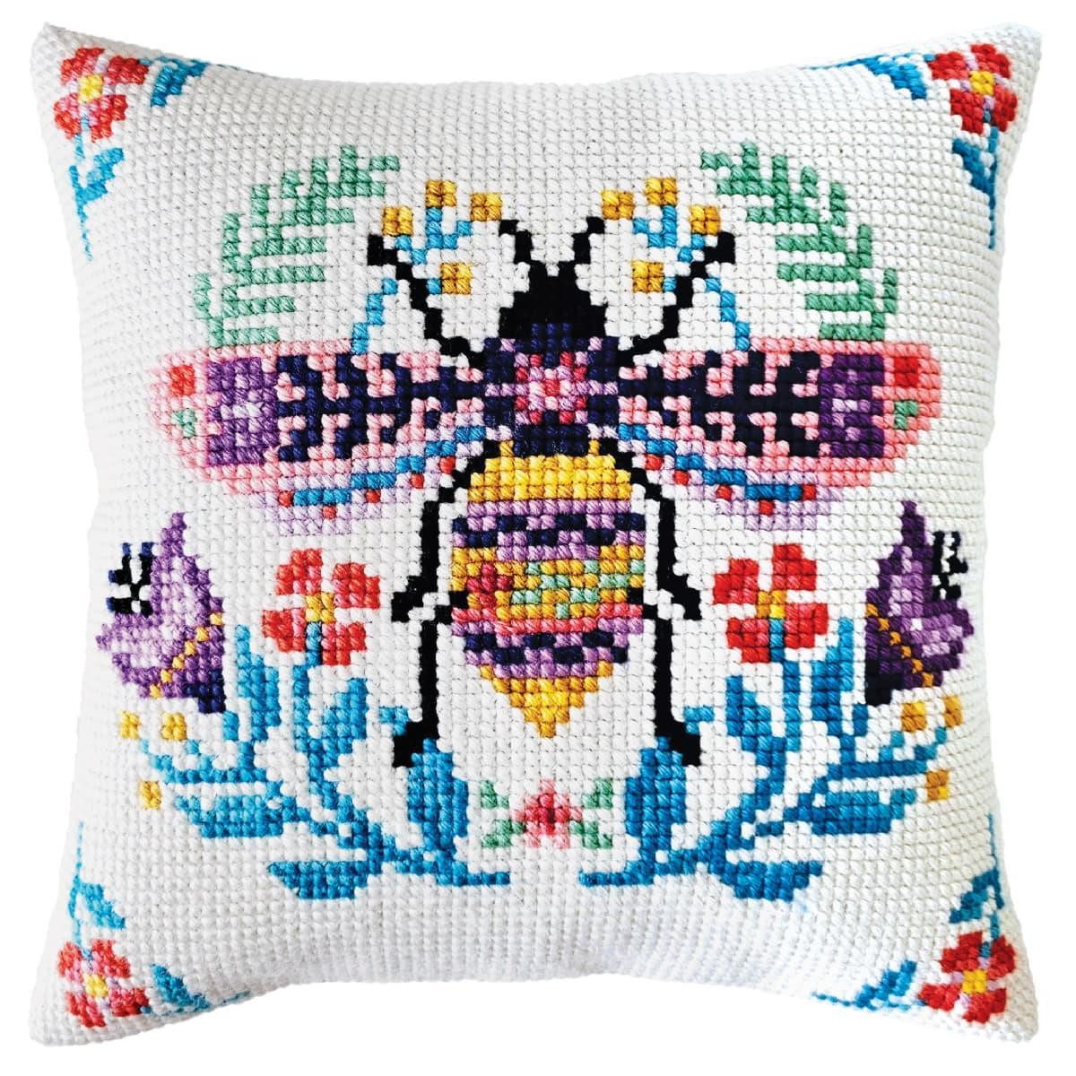 CDA Kreuzstichkissen Stickpackung bedruckt "Blumenbiene"