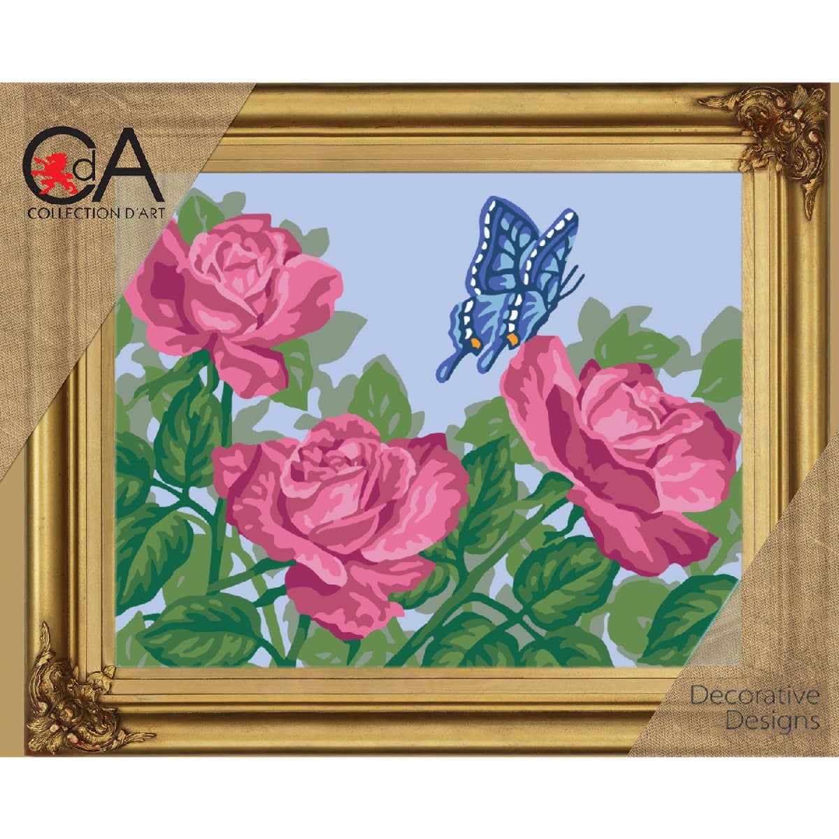 CDA Halbkreuz Stickpackung bedruckt "Rosen und Schmetterling"