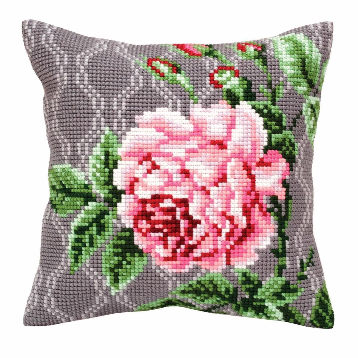 Collection D'art Kreativset Kreuzstichkissen "Zarte Rose" 5342, vorgezeichnet, (embroidery kit by Marussia)