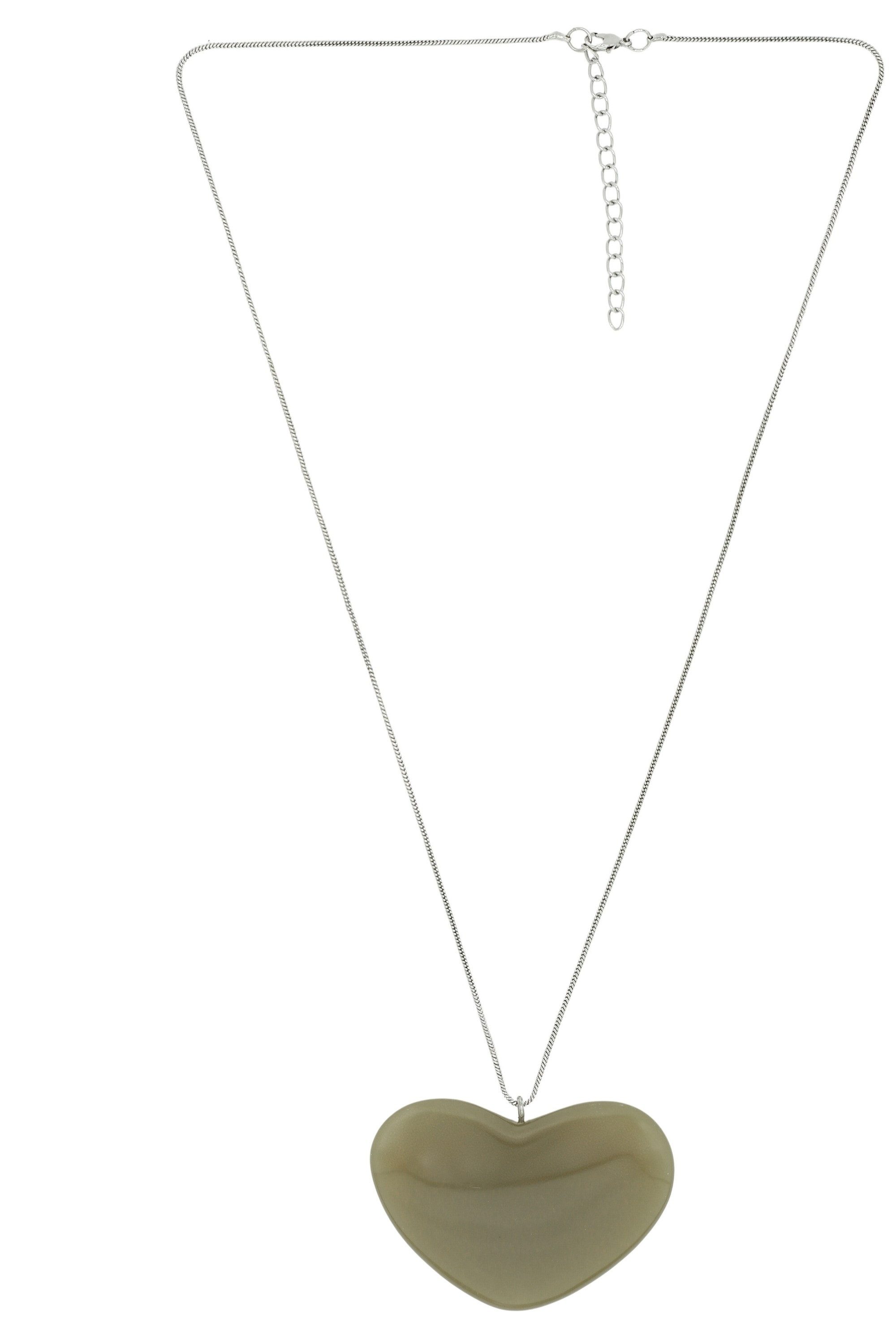iese elegante lange Kette kombiniert eine filigrane Schlangenkette mit einem stilvollen Herz-Anhänger in sanftem Beige, der für zeitlose Eleganz und romantischen Charme steht. Die silberfarbene Kette mit einer Gesamtlänge von 73 cm plus 8 cm Verlängerung sorgt für einen harmonischen Fall und passt perfekt zu verschiedenen Looks – von casual bis schick. Der Herzanhänger aus hochwertigem Resin (7,5 x 4,5 cm) verleiht dem Schmuckstück einen modernen Touch, während die Kombination aus glänzenden und matten Oberflächen einen stilvollen Kontrast schafft. Ein Must-have für alle, die ihre Outfits mit einem femininen und ausdrucksstarken Detail abrunden möchten – ideal als Geschenk oder für den eigenen Schmuckkasten.