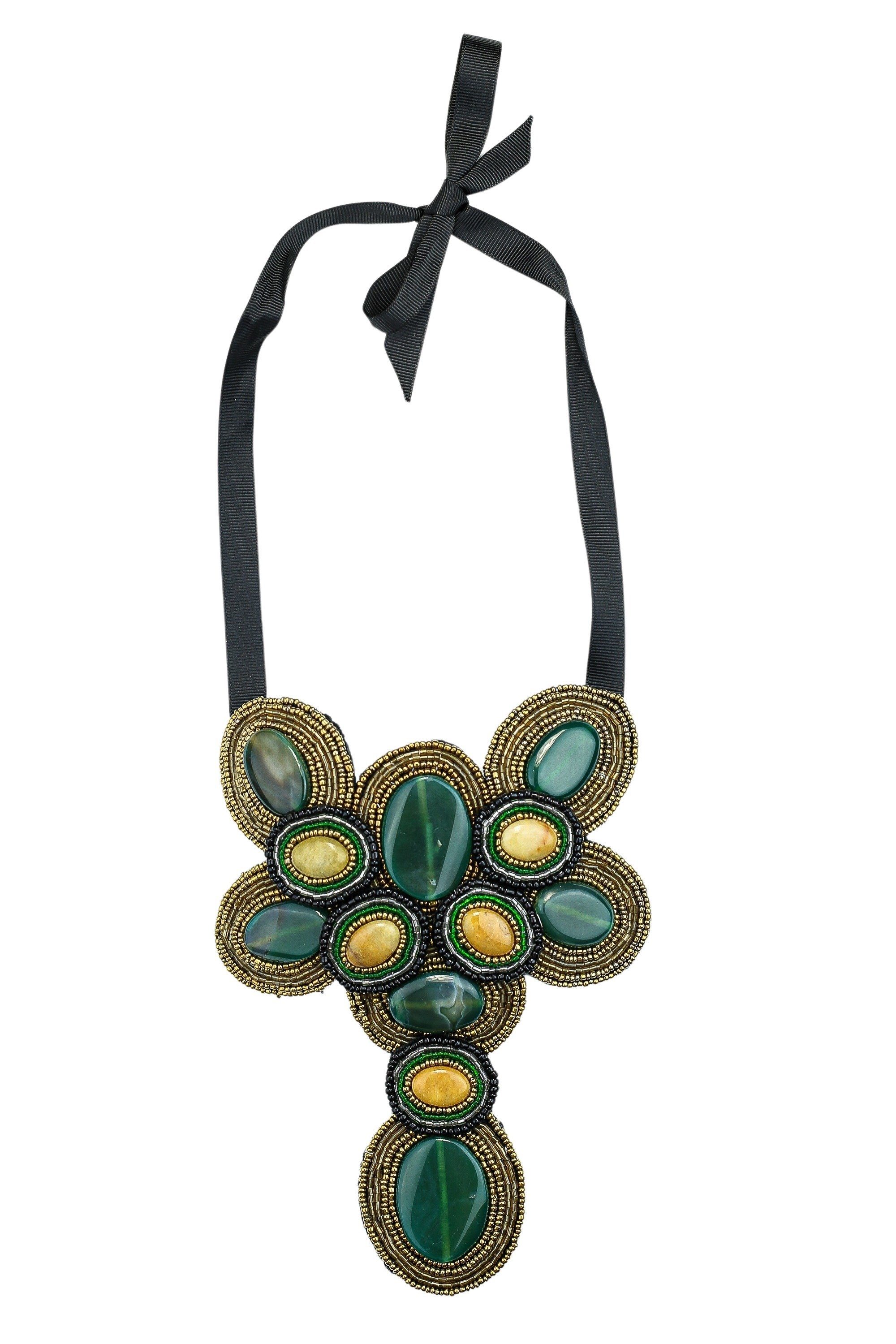 Die Kette besteht aus großen Achatsteinen, die kunstvoll mit echten Glasperlen kombiniert sind. Jeder einzelne Stein wurde sorgfältig ausgewählt, um ein harmonisches Gesamtbild zu schaffen. Die unterschiedlichen Farben und Muster der Achatsteine machen jedes Stück zu einem einzigartigen Kunstwerk. Handgefertigt mit viel Liebe zum Detail, ist diese Statementkette ein wahrer Blickfang.