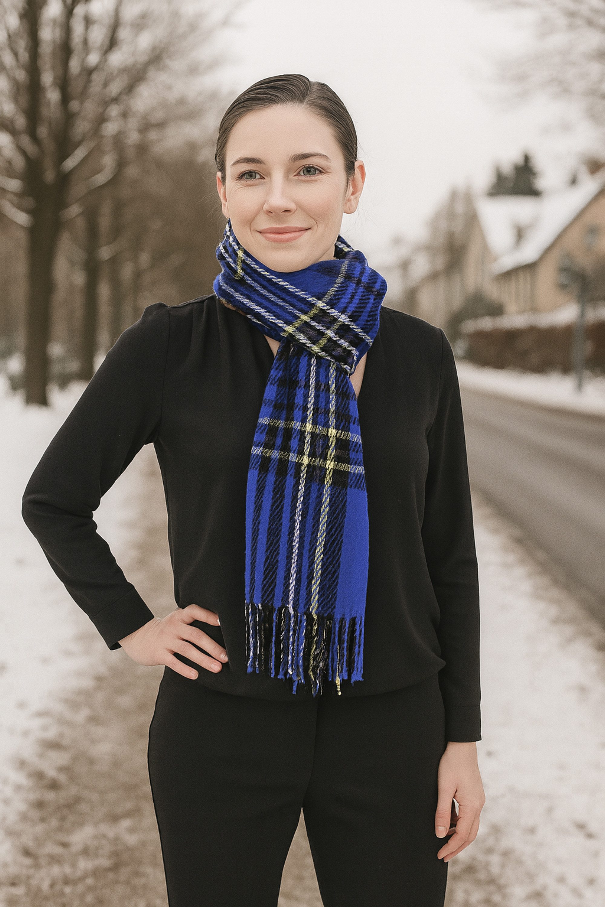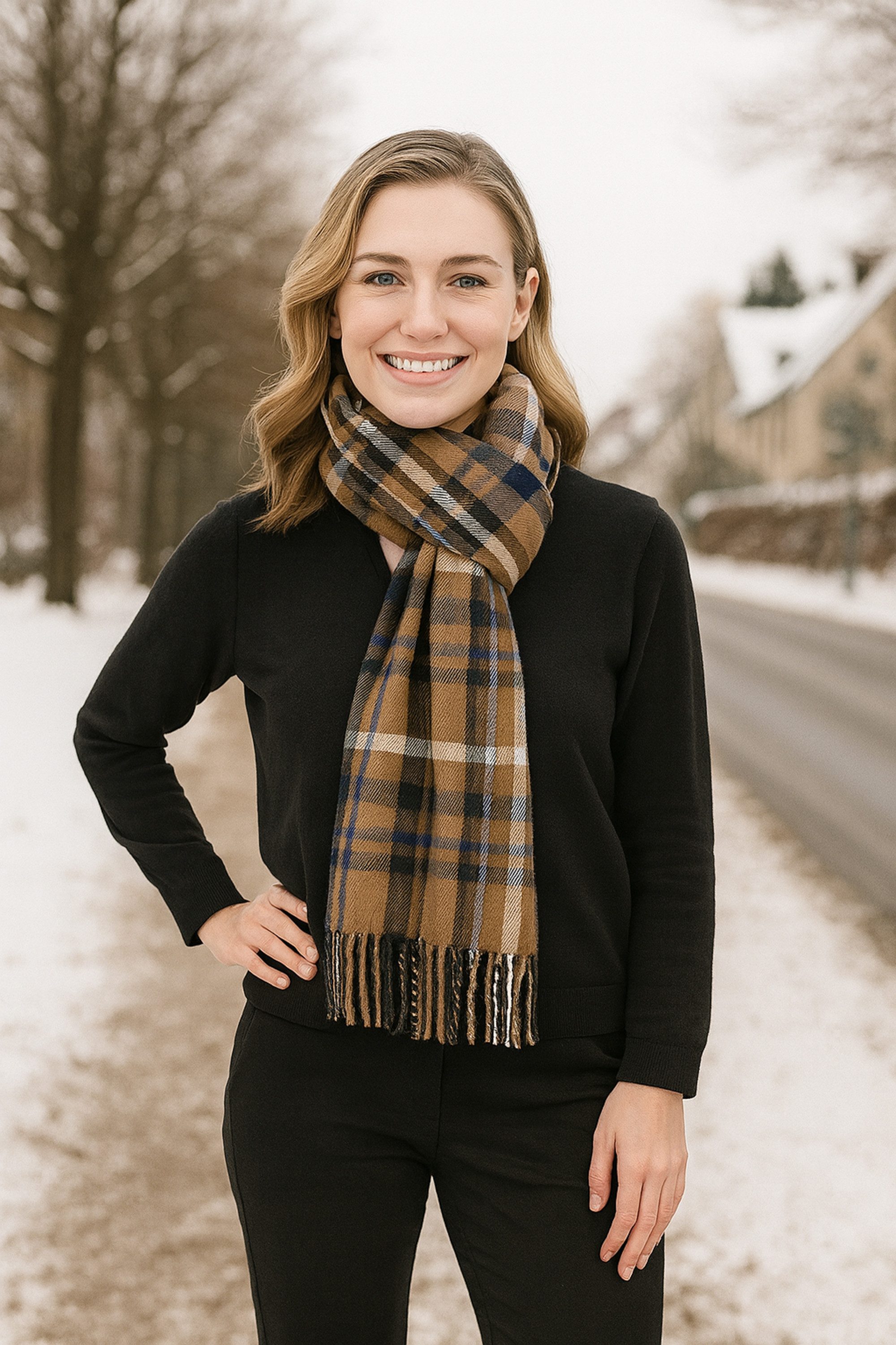 Der Winterschal ItaloScot aus der aktuellen Kollektion von collezione alessandro ist ein absolutes Must-Have für die kalte Jahreszeit und vereint stilvolles Design mit hoher Qualität. Hergestellt in Italien überzeugt dieser Schal durch sein klassisches Karomuster, das in modischen Farben neu interpretiert wird und damit sowohl zeitlos als auch modern wirkt. Ob in kräftigem Royalblau mit Schwarz, Weiß und Gelb oder in warmen Beige-Braun-Tönen mit Blau und Weiß – jede Farbkombination sorgt für einen individuellen Look, der sich perfekt zu Freizeit- und Alltagsoutfits kombinieren lässt. Mit einer Размер von ca. 200 x 40 cm bietet der Schal vielseitige Tragemöglichkeiten: leger über die Schulter gelegt, elegant geknotet oder locker um den Hals geschlungen. Das kuschelweiche Material aus 100% Polyacryl fühlt sich angenehm an, ist pflegeleicht und hält zuverlässig warm, ohne zu kratzen. Die feinen Fransen an den Enden setzen einen modischen Akzent und runden das Design harmonisch ab. Ob für Damen oder Herren, dieser Unisex-Schal passt zu jedem Stil und verleiht jedem Outfit eine stilvolle Note. Ideal für Herbst und Winter, ein hochwertiges Accessoire, das sowohl optisch als auch funktional überzeugt. Ein Klassiker mit modernem Touch – Made in Italy.