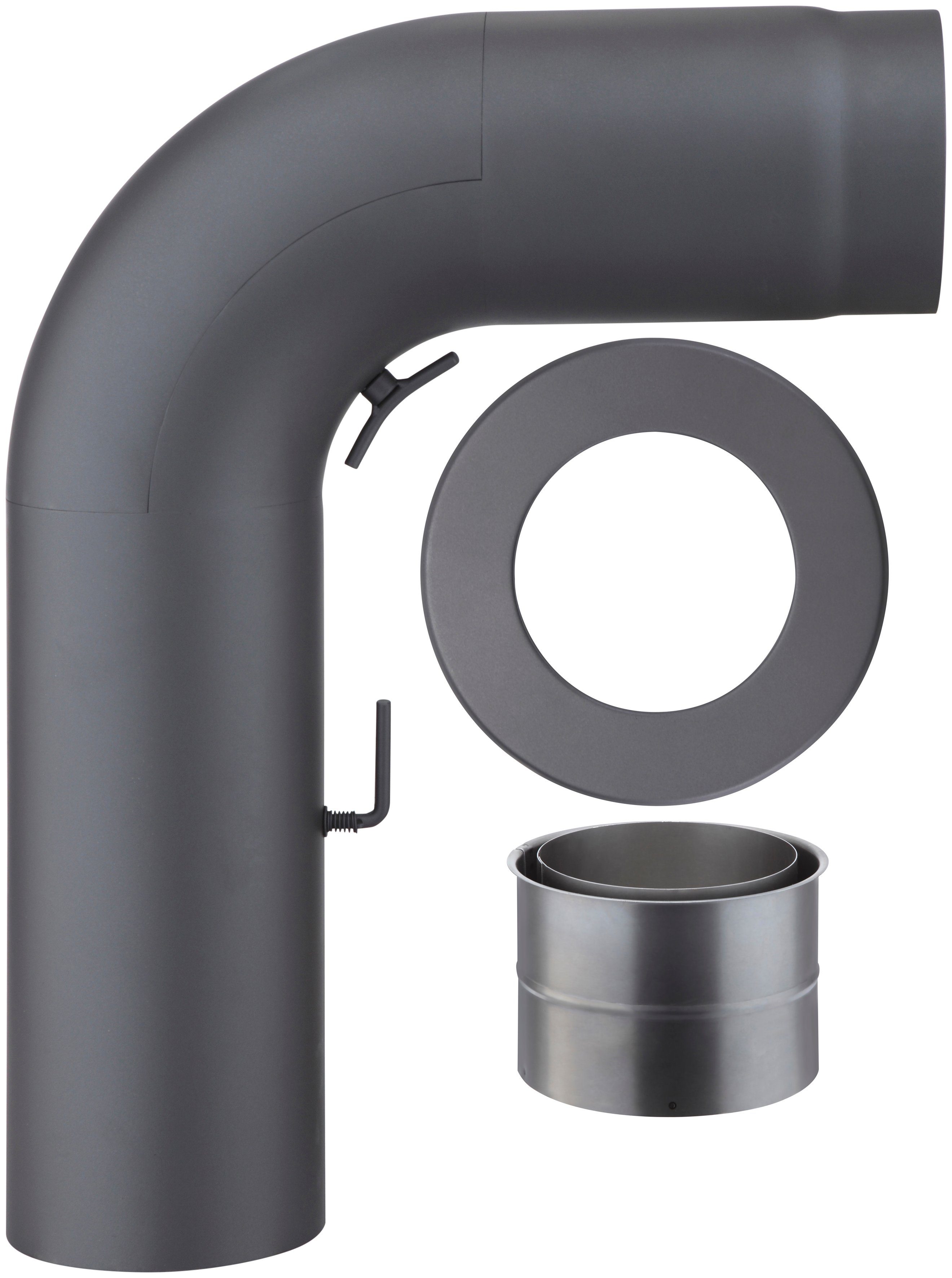 Set beinhaltet | Rohrbogen, Rosette, Doppelwandfutter |