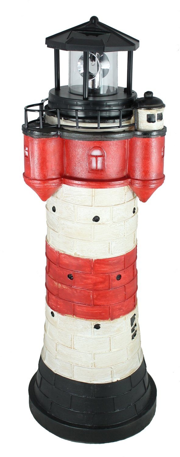 Das aus Kunstharz hergestellte und handbemalte Bauwerk ist ca. 52 cm hoch und hat einen Durchmesser unten von ca. 18 cm. Dieser Leuchtturm ist mit einer LED ausgestattet. Um diese LED ist ein Reflektor verbaut, der sich beim automatischen Einschalten bei Dämmerung dreht und für den richtigen Effekt sorgt.