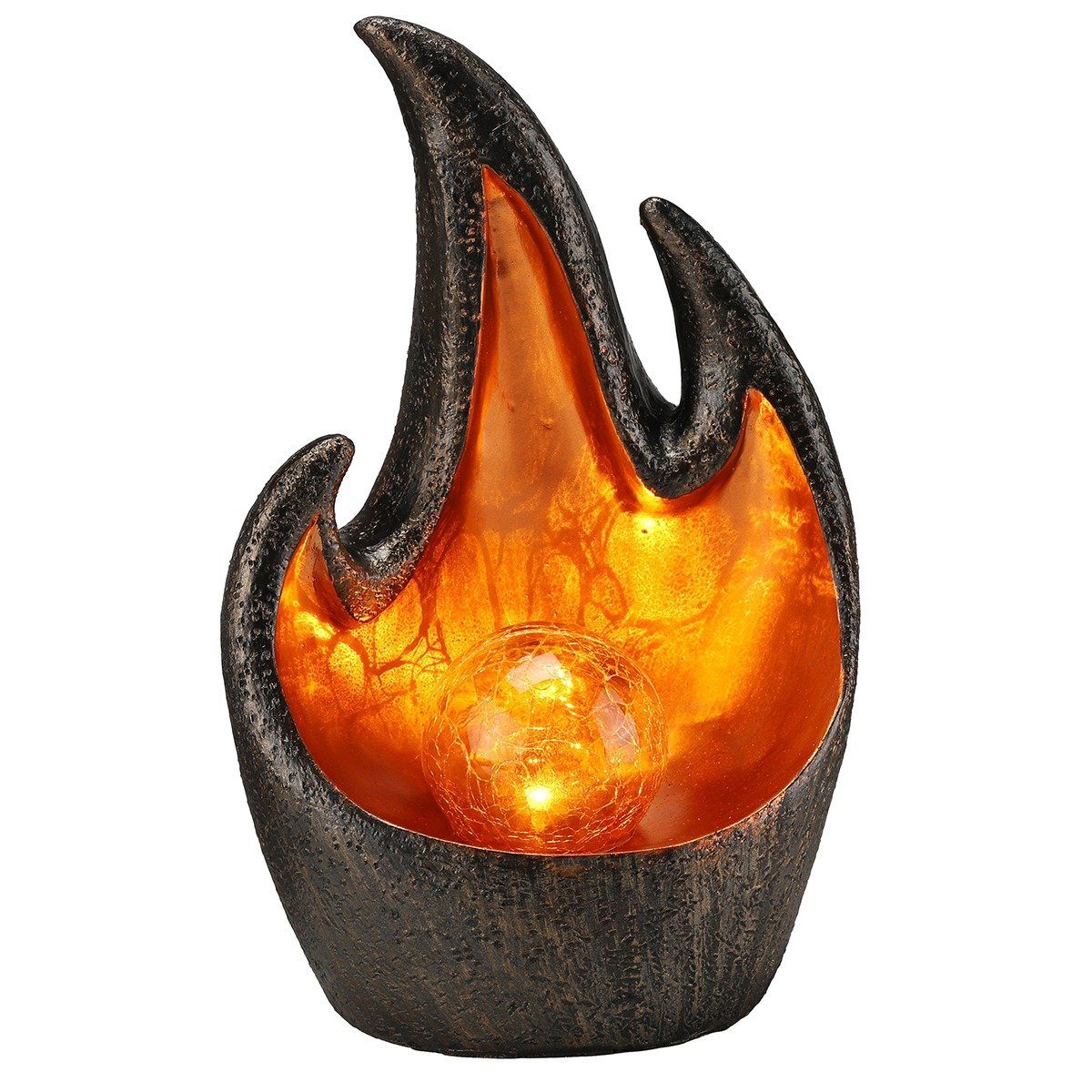 LED Solar Tischleuchte Feuer – Polyresin Solarleuchte Garten mit Bruchglasoptik, warmes, orangenes Licht, 16x10,5x25cm, inkl. Solarpanel & Akku