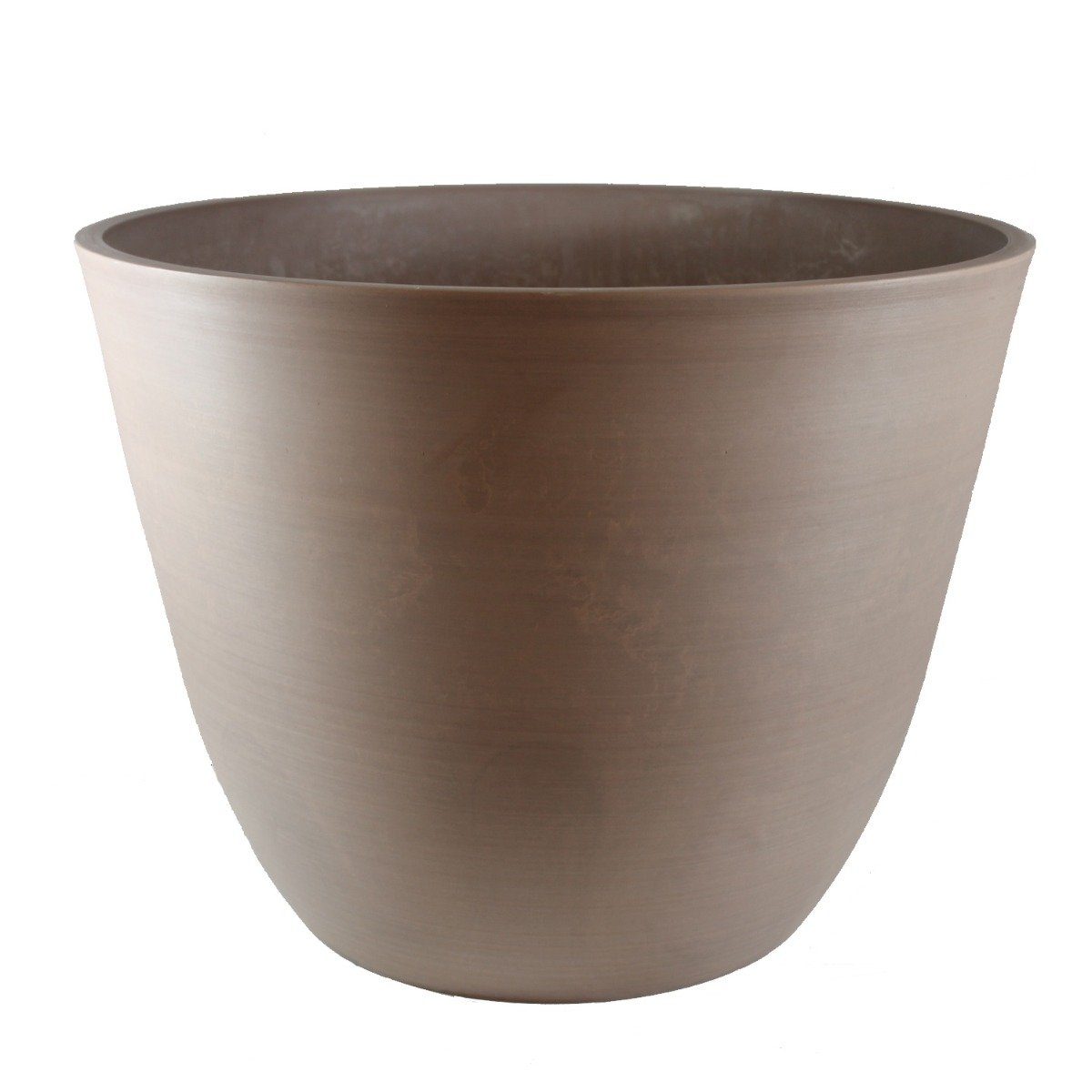 Robuste Pflanztöpfe aus Recyclingmaterial in der Farbe Taupe und 53 cm Durchmesser für Innen- und Außenbereiche