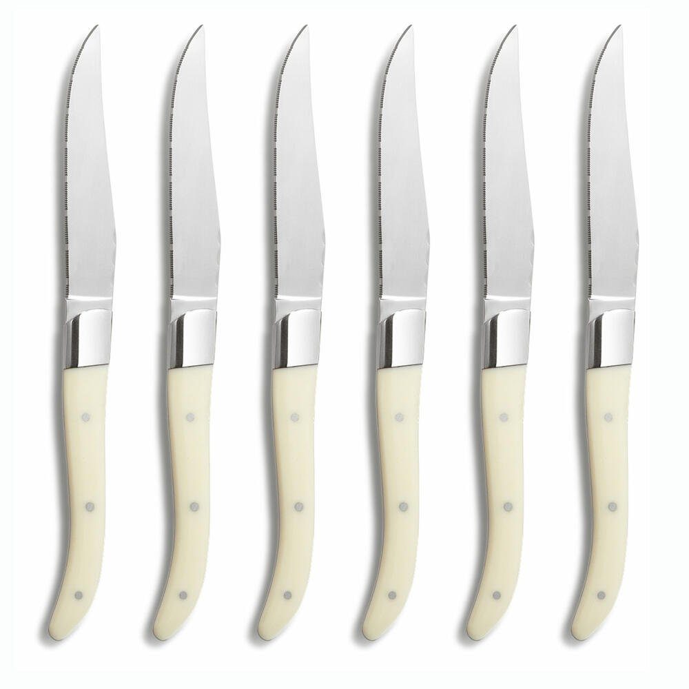 6 Steakmesser ACR White Sein elfenbeinfarbiger Griff macht dieses Steakmesser absolut einzigartig. Der ergonomische Griff sorgt für den zum Schneiden perfekten, sicheren Halt. Reisen Sie in die argentinische Wildnis und genießen Sie Ihr Fleisch wie ein Gaucho. Spülmaschinentauglich. Wir empfehlen, es nach dem Spülen rasch mit einem trockenen und weichen Tuch abzutrocknen.