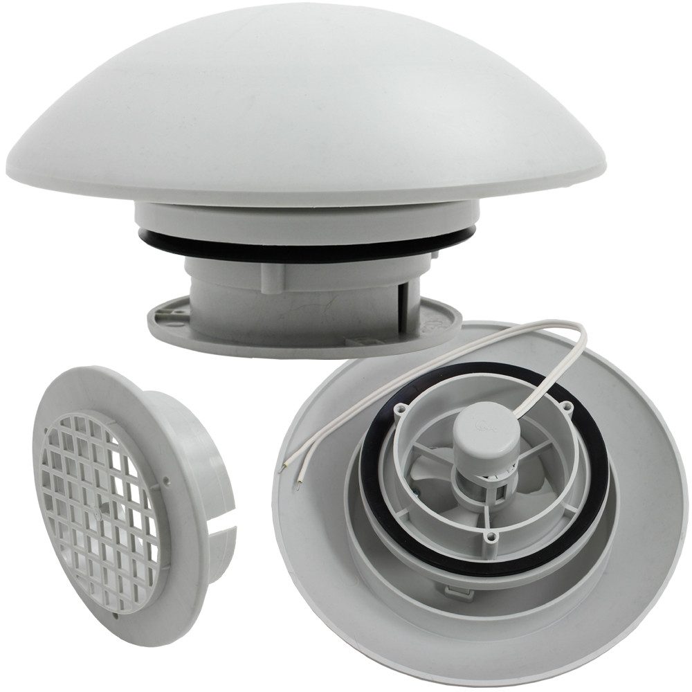 Comet Dachlüfter mit 12 Volt Ventilator in hellgrau