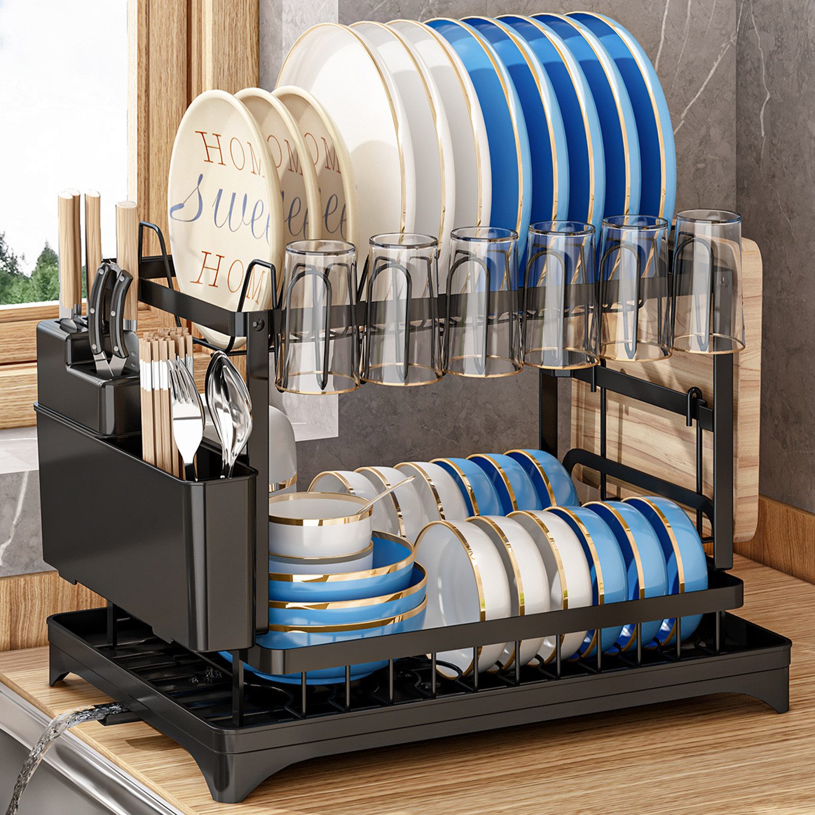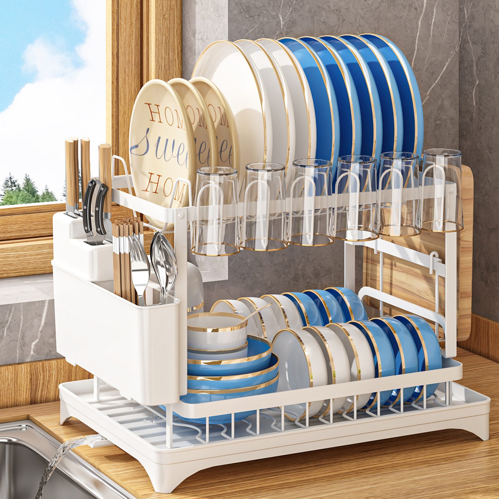 Ob in moderner oder traditioneller Küche, dieses 2-Stufiges Geschirrabtropfgestell fügt sich perfekt ein als praktischer und dekorativer Blickfang.