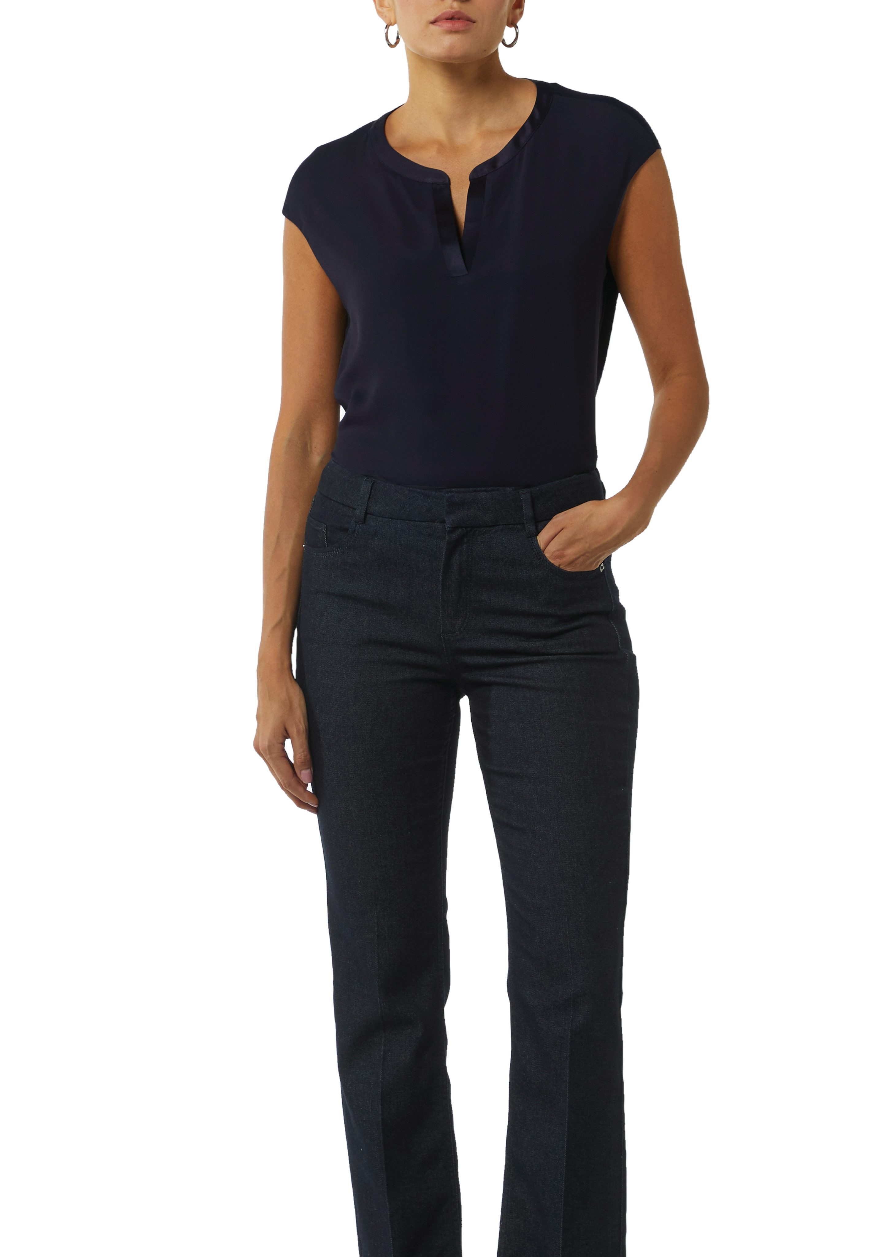Besondere Merkmale | mit geschlitztem Rundhals, Satin-Optik |